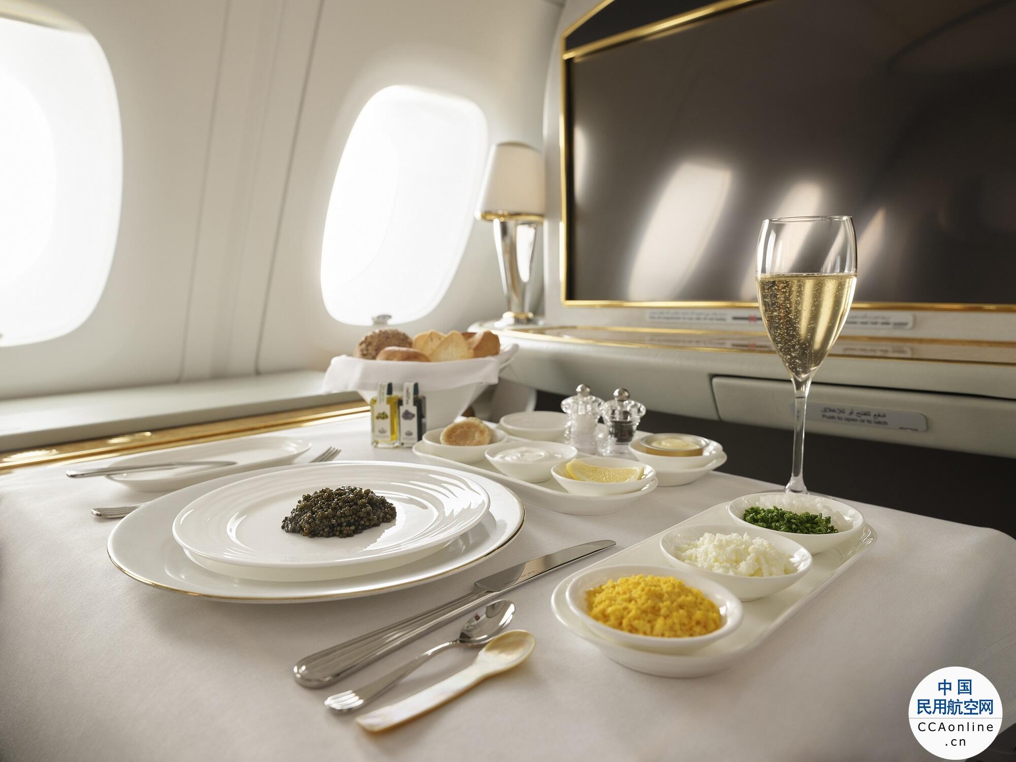 香槟配鱼子酱畅吃体验:阿联酋航空的头等舱体验一直以卓越服务闻名。在2022年,头等舱服务将再次迈上新台阶。作为“随时点餐”服务的一部分,头等舱乘客现在可尽情无限畅吃波斯鱼子酱,搭配世界著名的唐·培里侬年份香槟。阿联酋航空是唯一一家与该豪华品牌达成独家协议的航空公司。