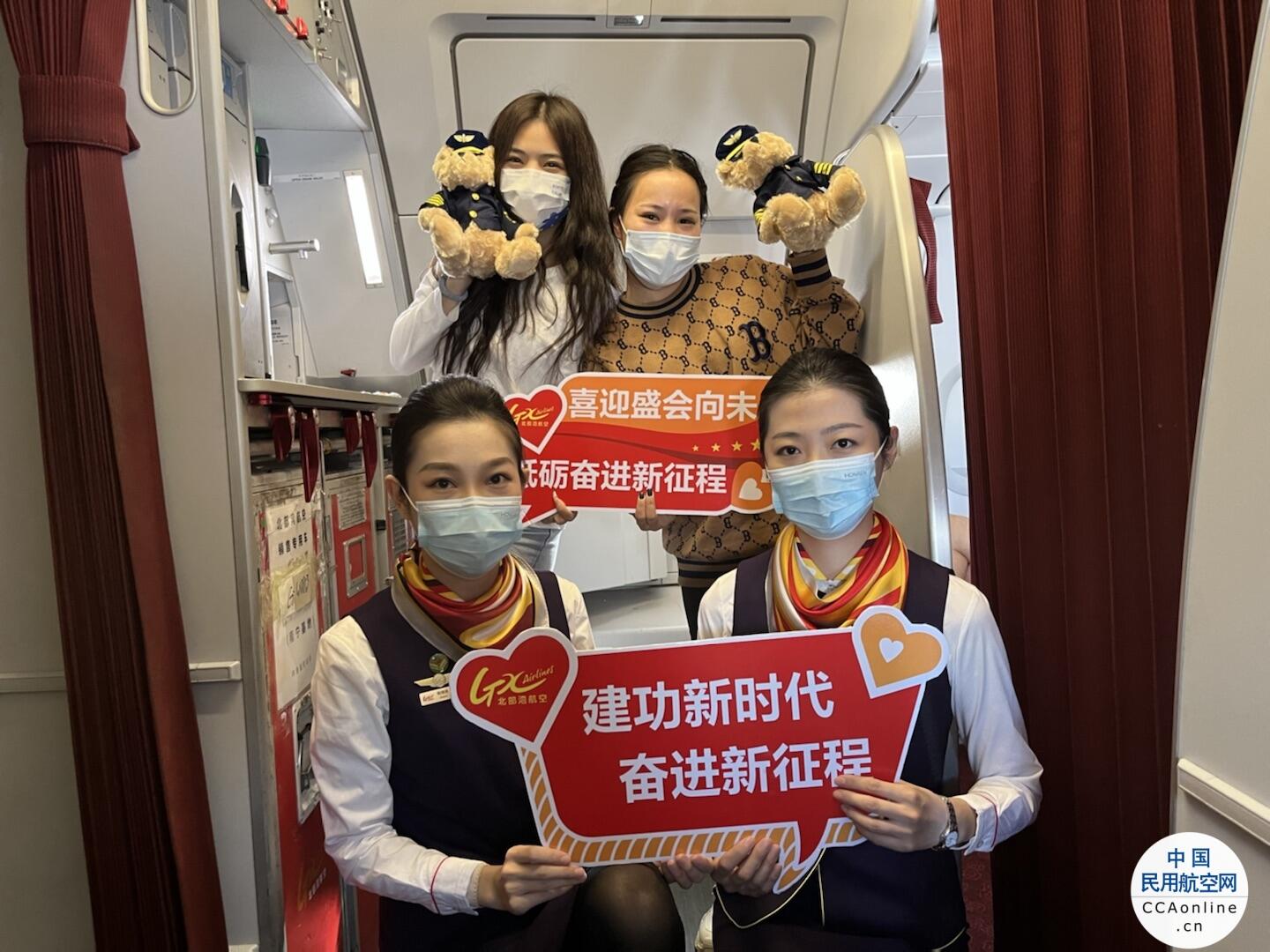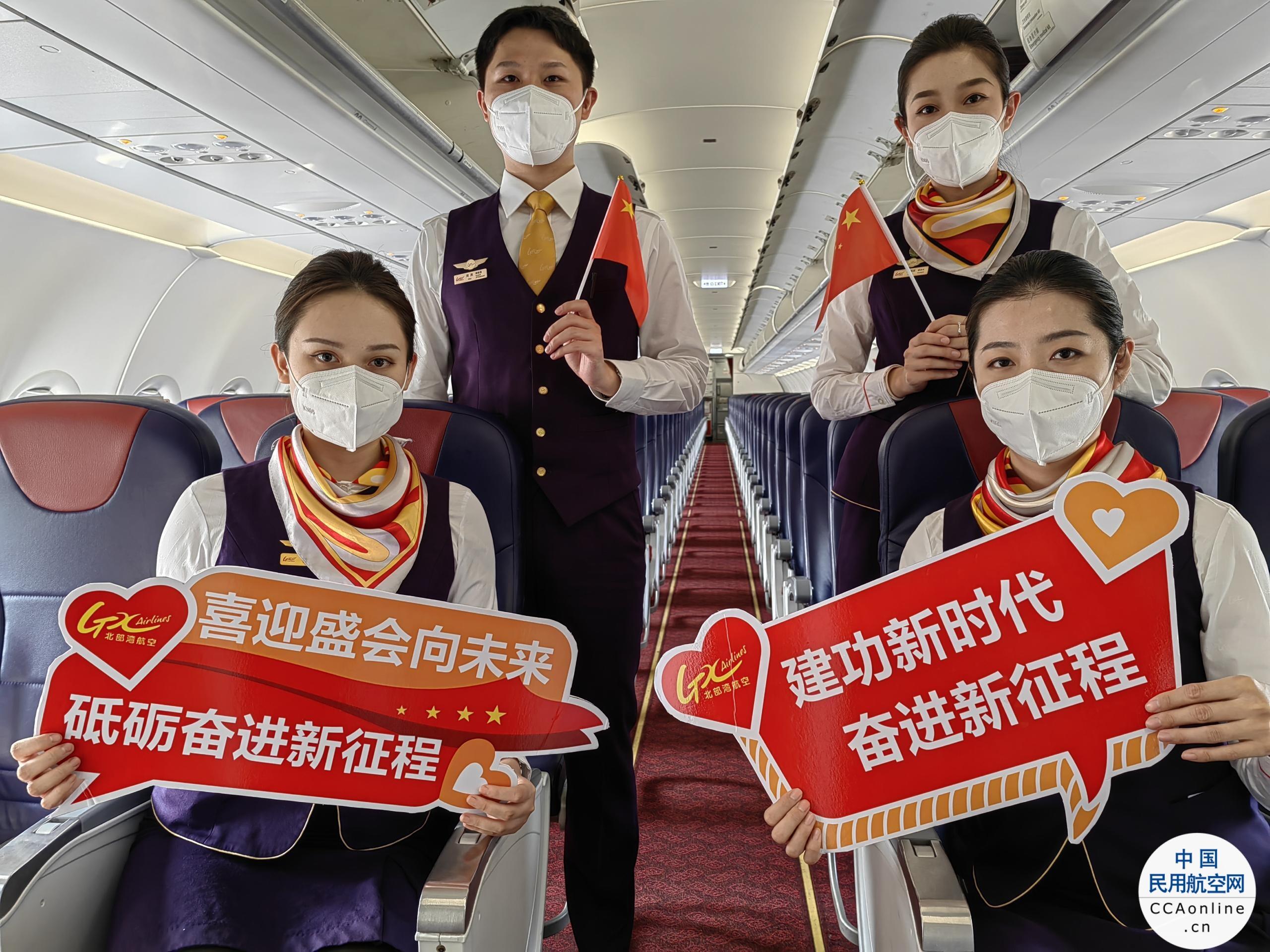 党的二十大期间,北部湾航空在“党建为魂”的企业文化引领下,通过机上主题航班、知识问答等多种方式开展党史学习教育活动,让党的二十大精神在万米高空传递。同时,北部湾航空还鼓励全体员工自觉做贯彻落实党的二十大精神的先行者、担当者,深入落实“三个敬畏”,持续加强“三基”建设,坚持“真情服务”理念,为广大旅客提供安全、舒适、愉悦的出行体验。