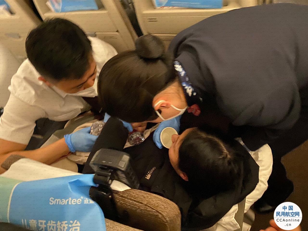 与此同时,机组得知旅客情况后,立即与地面联系做好备降附近机场的准备。在此期间,乘务员一直陪伴在女孩的身边安抚她,密切观察她的身体变化情况,告诉她有专业的乘务组在,让她不要怕。之后每隔15分钟,乘务员都会为女孩测量心率、血压等,生命体征均正常。后得知女孩情况平稳后,机组决定飞回西安,并联系安排好西安机场急救中心接机。
