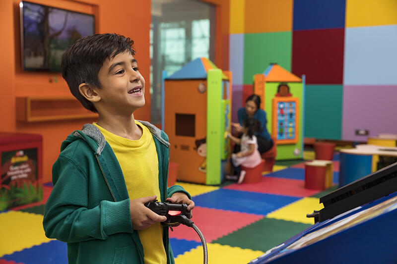 3. 在迪拜国际机场T3-A和T3-B候机大厅的头等舱和商务舱专属休息室,儿童游戏区提供街机级别的电子游戏和索尼PlayStation游戏终端。休息区还配备了母婴室、舒适的哺乳区和婴儿更换尿布设施。