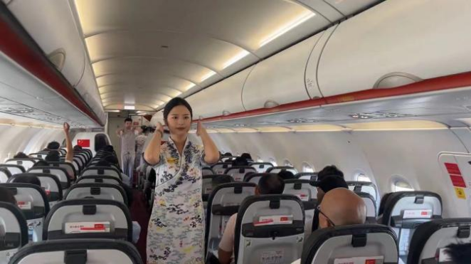 “放飞”又叫“带飞”,在民航业中指新入职乘务员在完成地面训练后,由经验丰富的带飞教员带领上机进行实操飞行的过程。成为一名真正的乘务员需要经过严格的初始培训、地面训练和验收考核,而这个暑运对这批新乘务员来说意义非凡。“暑运客流量大、客座率高、天气复杂多变,这就更加考验我们乘务员的服务能力和专业水平。”带飞教员闫莉讲道。“客座率上来了,上机的行李自然就多了。为了妥善放置旅客的行李,我们一方面要提前在保障群里同地面紧密沟通监控行李数量,一方面待旅客上机后各号位乘务员要及时协助旅客有序安放行李,同时提示旅客可以将小背包放置在前排座椅下方。”每次带飞闫莉都根据实际航班情况耐心地给新乘务员讲解服务保障要点。