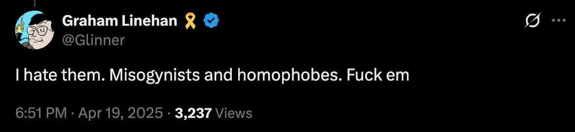 莱恩汉是知名情景喜剧《神父泰德》(Father Ted)、《黑书》(Black Books)和《IT狂人》(The IT Crowd)的编剧。他被警方讯问关于其4月份发布的三条言辞激烈反对跨性别者的推文。警方告知他,这些推文可能违反多项英国关于网络通信的法律条款。