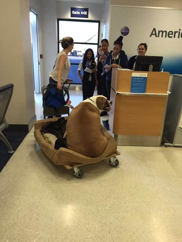 近日,一名搭乘美国航空头等舱飞往休斯顿(IAH)的乘客报告称,在飞行过程中,他被一只重达100磅(约45公斤)的服务犬困在靠窗座位,无法动弹。该乘客表示,由于飞机在跑道上延误了1小时,再加上整个飞行过程,他的双腿被狗压住长达数小时。