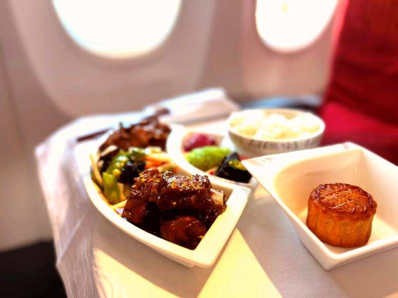 为让旅客在万米高空尽享节日氛围,海南航空精心打造云端餐饮体验,将空中旅途化为一场舌尖上的赏味之旅。恰逢国庆中秋双节,海南航空延续“时令飨宴”系列主题,继“粽夏至味”后,将于2025年10月6日推出“时令飨宴·金秋食色”——以金色秋韵为灵感,呈现一场视觉与味觉兼具的空中飨宴。在北京—海口往返航线上,海南航空特别推出“月映珐琅,云端共圆”双节主题餐饮,配备国风珐琅月饼与中秋桂花酿无酒精鸡尾酒特调,以经典秋日风味传递“花好月圆,国泰民安”的美好祝愿。其他航线则同步上线“金秋食色,赏味中秋”主题餐饮。海南航空在北京、海口、广州、深圳、成都、西安、重庆等44个站点出港的部分航班上,为旅客准备了节日月饼,并结合各地中秋饮食文化与应季食材,携手杭州、兰州、西安、成都等20多个站点航食团队,在部分出港航线的公务舱推出多款中秋特色菜品,包括桂花小排、板栗鸡、葱烧海参、桂花鸡、荷塘小炒、桂花红枣莲子羹等,与旅客云端共飨团圆滋味。