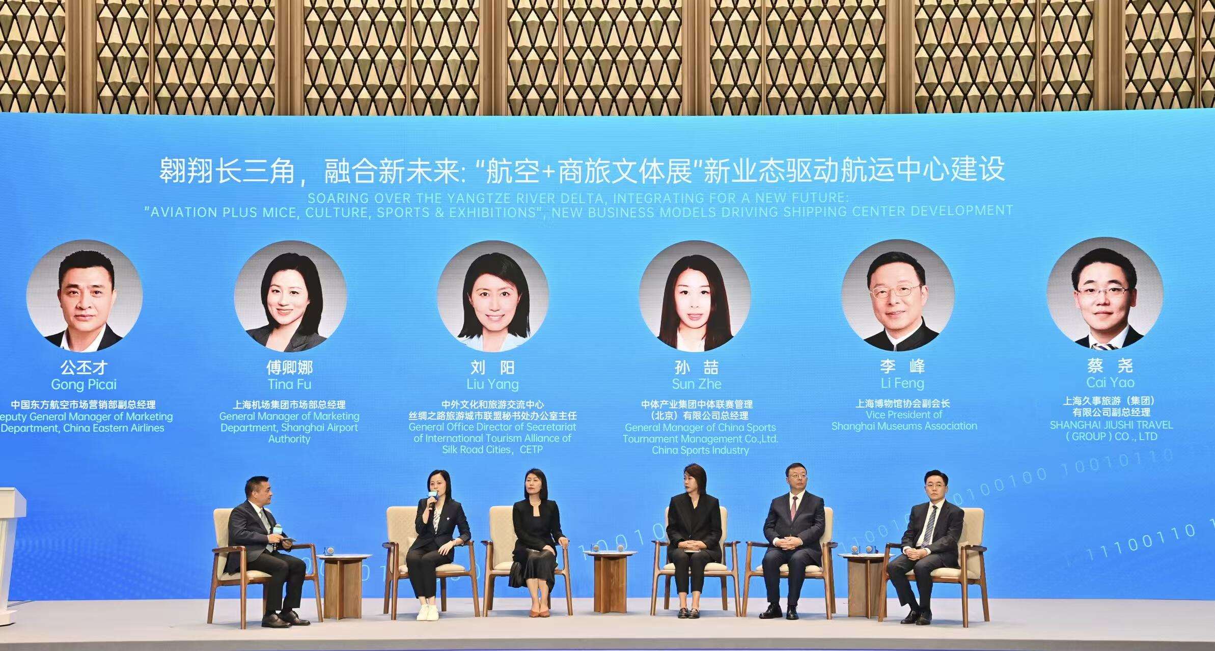 当前,“航空+商旅文体展”构建起“立体服务新生态”。在圆桌论坛环节中,上海机场、中外文化和旅游交流中心、中体产业集团、上海博物馆协会、上海久事集团等单位嘉宾齐聚一堂,以“翱翔长三角,融合新未来:‘航空 + 商旅文体展’新业态驱动航运中心建设”为主题,共同探讨业态创新实践,为“航空+”融合发展建言献策。