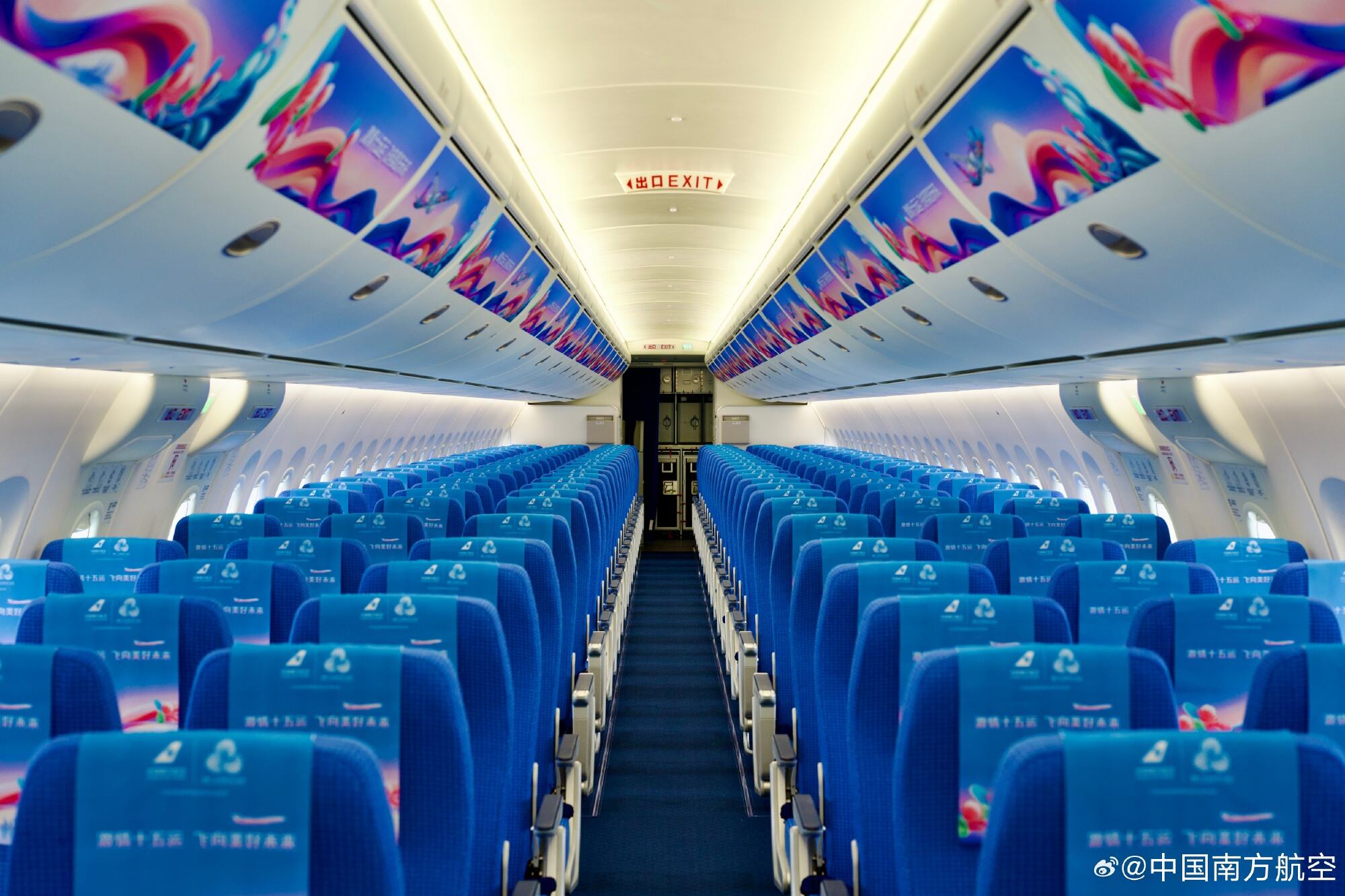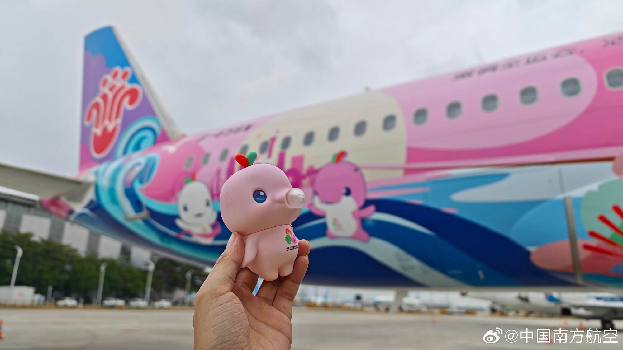“大美湾区”号是首架将“国之重器”——国产大飞机C919和粤港澳大湾区、十五运会等主题元素深度融合的民航客机,意义非凡。整体设计以蓝、粉、黄等绚丽色彩串联,聚焦粤港澳大湾区地标“港珠澳大桥”、岭南文化底蕴象征物“海洋”及寓意“旭日东升”的三大核心视觉元素,搭配十五运会吉祥物“喜洋洋”与“乐融融”,传递出大湾区多元、活力、开放、包容的精神,诠释勇立潮头、连接世界、飞向美好未来的寓意。