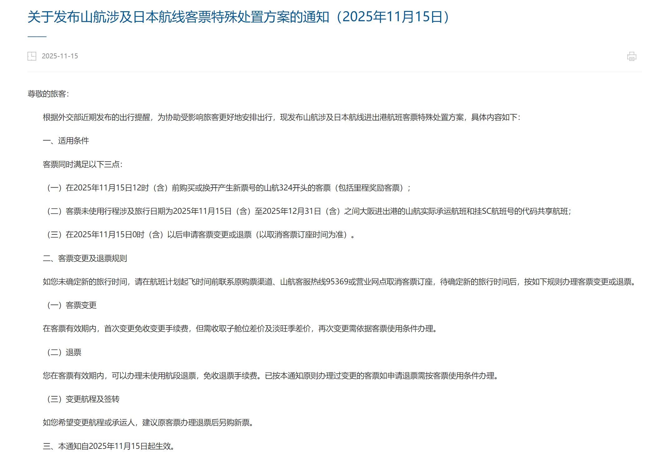 截至11月17日,国内多家航司相继发布涉及日本航线进出港航班客票特殊处置方案。