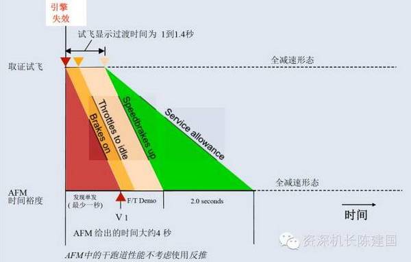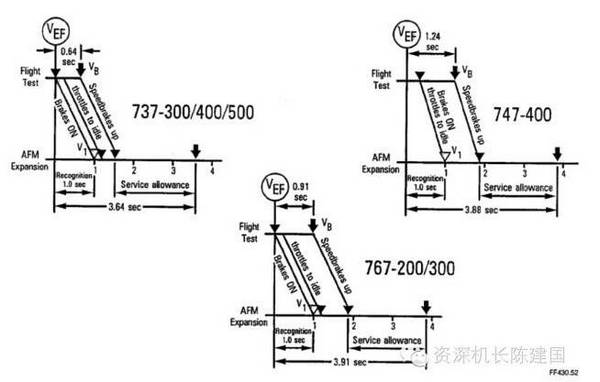 其实性能计算已经考虑了机组从起飞状态到停止状态的过渡延迟,试飞数据和一般模拟机训练可以在1-1.4秒之间完成,而性能计算的依据是4秒时间过渡,所以有足够的时间完成所有的停机动作。