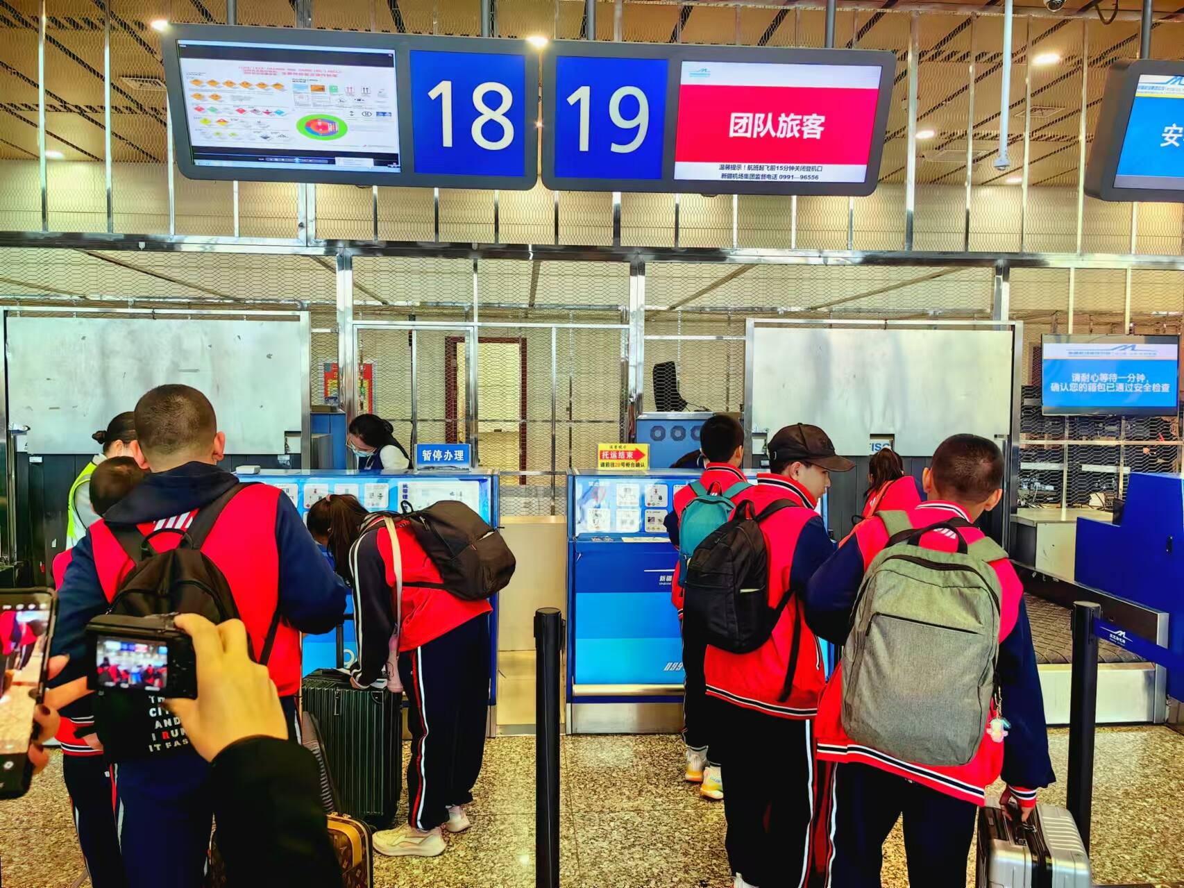 为确保儿童旅客能够快速乘机,享受轻松愉快的出行体验,库尔勒机场为儿童研学团增开团队旅客专用值机通道,随后在机场青年志愿者的引领下顺利通过安检,全程贴心守护,切实保障每位旅客顺利登机。