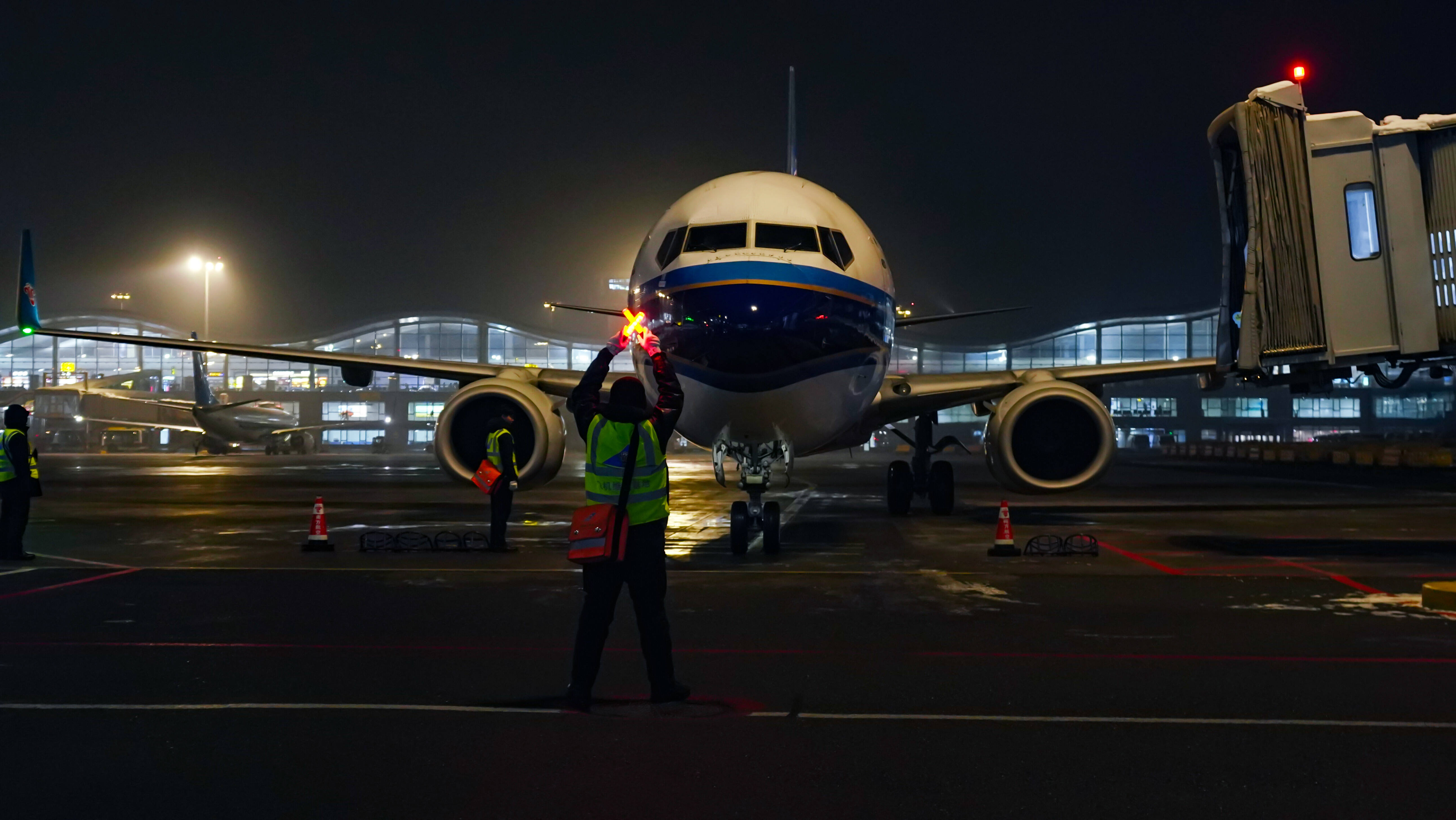 12月31日晚,夜色中的乌鲁木齐国际机场井然有序地忙碌着。民航新疆管理局、南航股份新疆分公司、新疆机场集团以及辖区单位主要领导,在这里迎接2024年最后一班航班平安归来,向全体机组成员送上鲜花并致以新年问候。