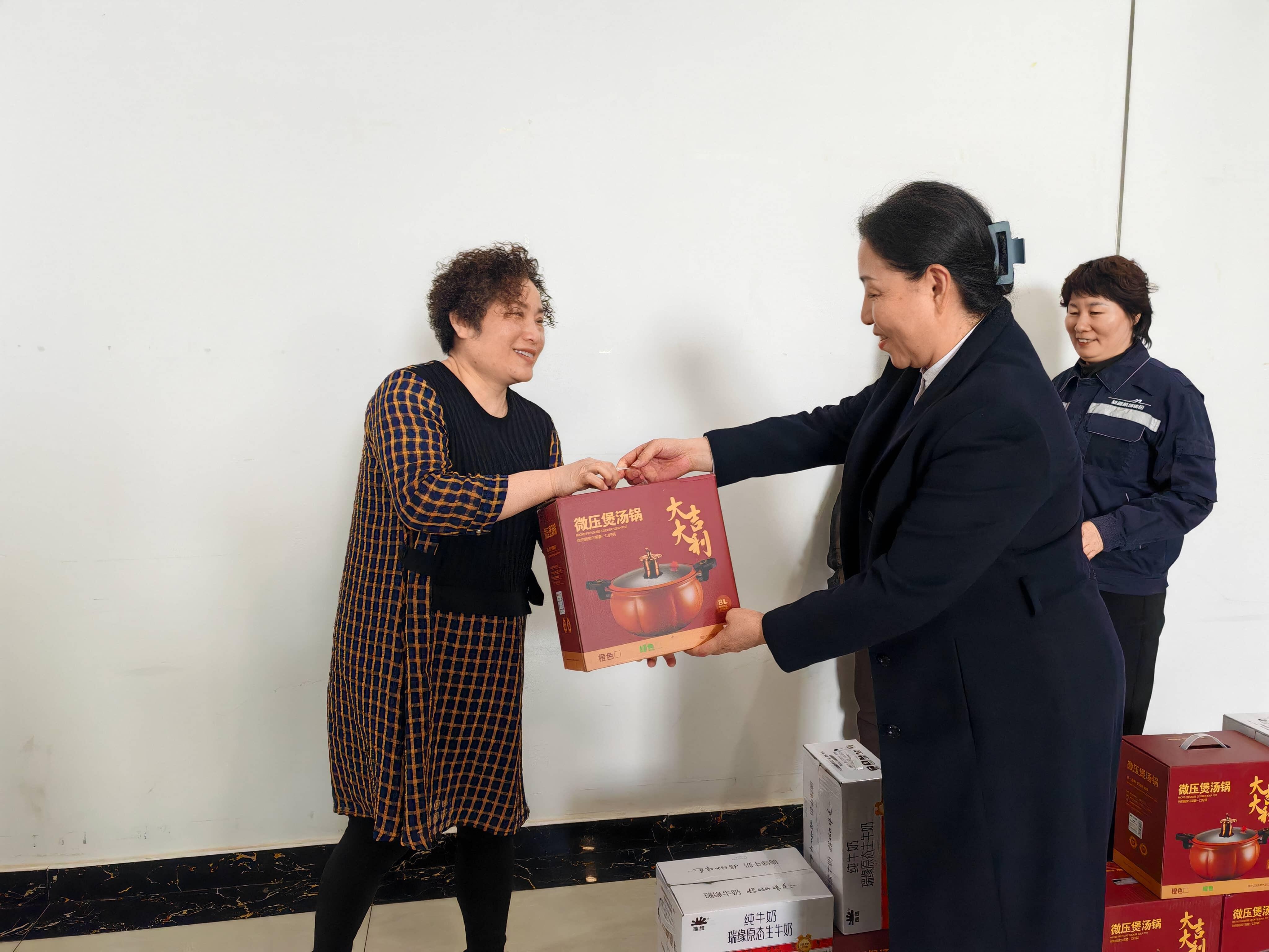 活动筹备阶段,库尔勒区域通过线上调查问卷和线下访谈的方式,广泛收集了女职工对于节日福利的意见和建议。经过精心挑选和比对,最终确定了微压锅和牛奶作为节日礼物。微压锅以其便捷实用的特点,能够满足女职工在忙碌工作之余轻松烹饪的需求;而牛奶则寓意着健康与关怀,希望女职工们能够保持良好的身体状态。