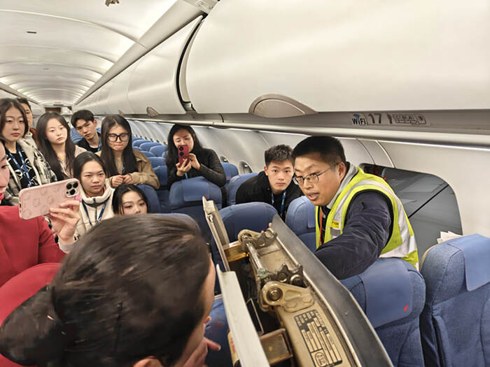 演练前,维修人员团队提前介入,集中学习了滑梯释放流程、客舱门操作规范及常见故障处置等内容。演练开始时,维修人员系统讲解了客舱门开启、滑梯释放的步骤与技术要点,并结合实际案例剖析常见故障的原理,现场解答了乘务组提出的技术疑问。