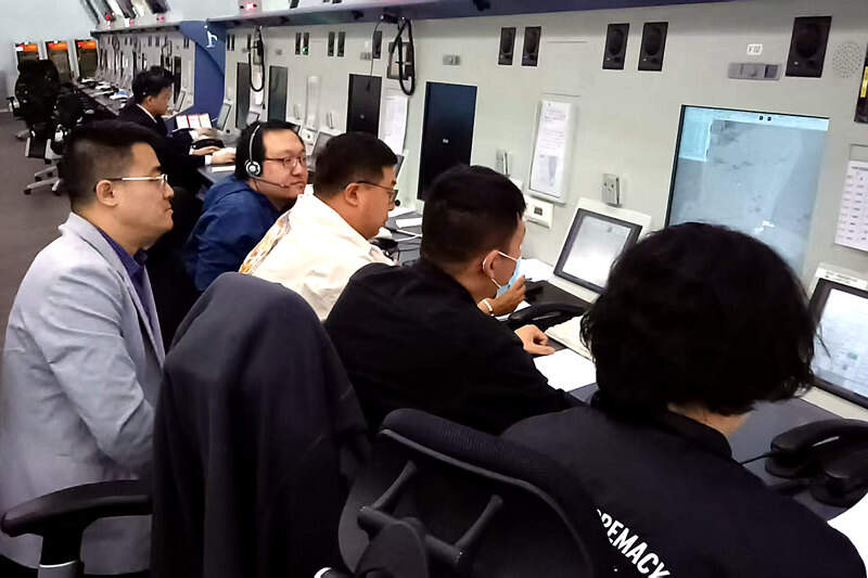 清晨5时,校飞飞机在天津机场起飞。机组校验员与地面机务员通过专用校验频率建立稳定通信,实时传输通话质量、飞行高度及定位数据等关键数据。地面团队分工明确:有人紧盯自动化系统监控飞行轨迹,有人通过甚高频保持双向联络,有人专注记录校验参数,现场协调高效有序。经过多轮测试,所有科目均达到预期标准。