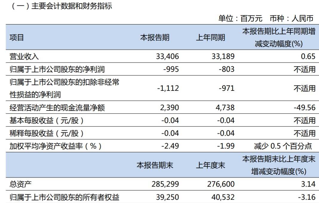 中国东航公告称,公司2025年第一季度营业收入为334.06亿元,较上年同期增长0.65%。归属于上市公司股东的净利润为-9.95亿元。