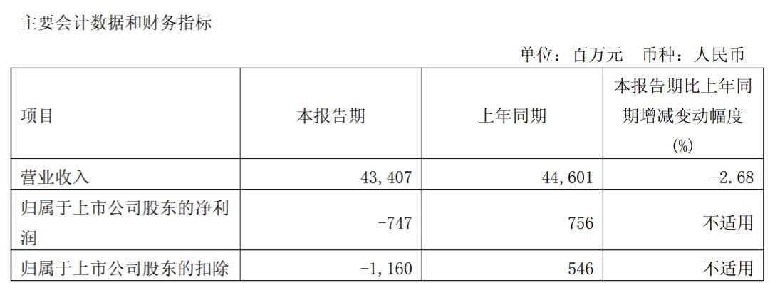 中国南方航空发布公告称,2025年第一季度营业收入434.07亿元,同比下降2.68%;净利润亏损7.47亿元。