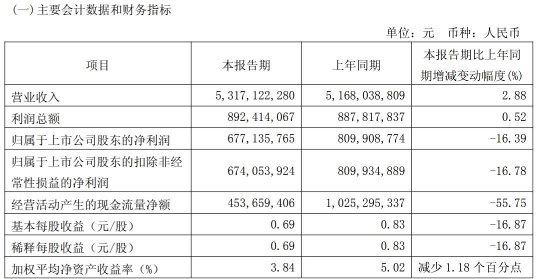 春秋航空报告称,实现营业收入53.17亿元,同比增长2.88%;实现归属于上市公司股东的净利润6.77亿元,同比下降16.39%。