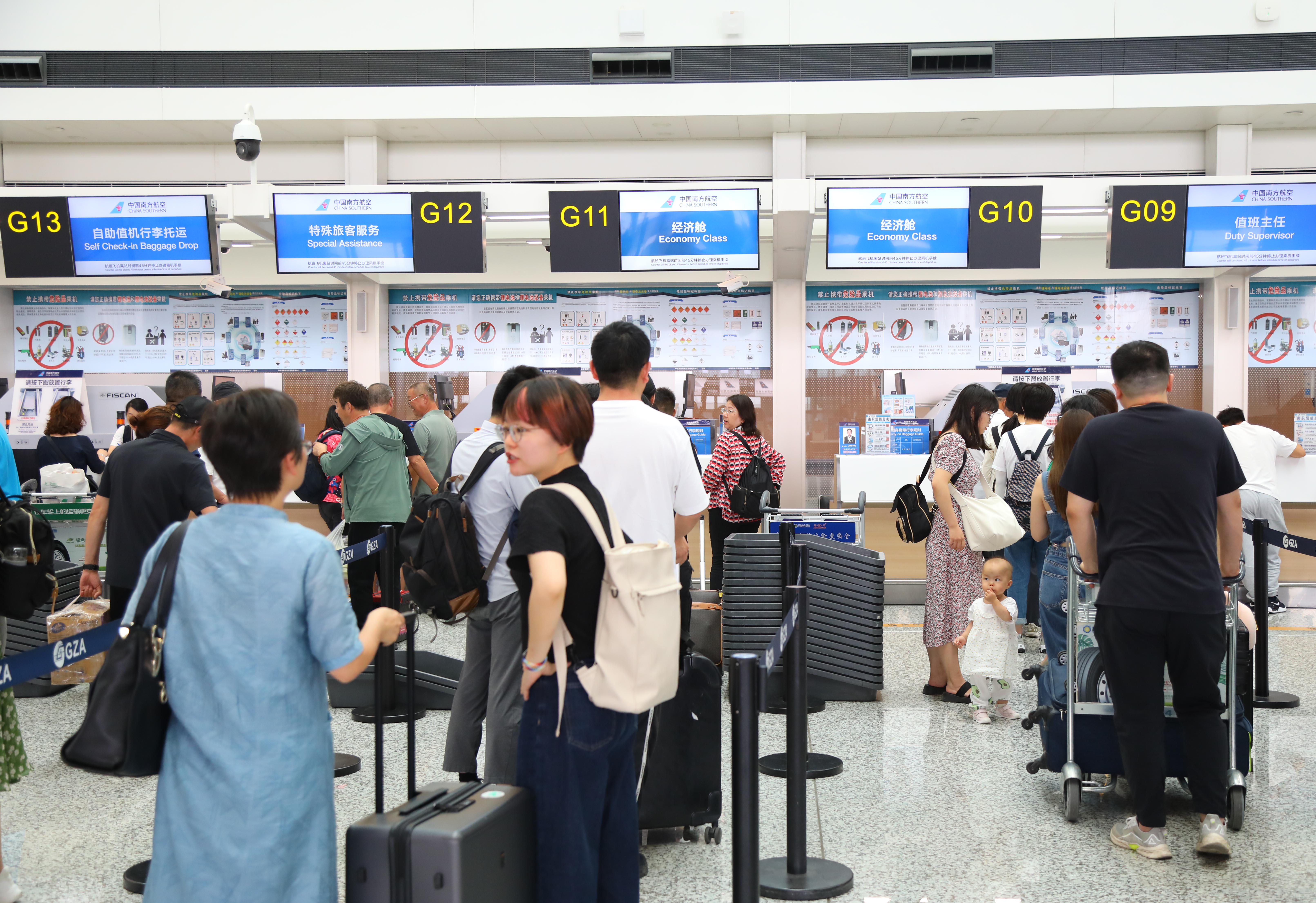 (通讯员 南航贵宣)2025年的“五一”小长假刚刚落下帷幕,贵阳龙洞堡国际机场内依然人潮涌动。拖着行李箱的王女士笑着说:“贵州的山水太美了,气候也凉爽适宜,这次特意带孩子来感受苗寨风情和喀斯特地貌。”近年来,随着“山地公园省”品牌影响力持续扩大,贵州正成为全国游客的热门目的地。