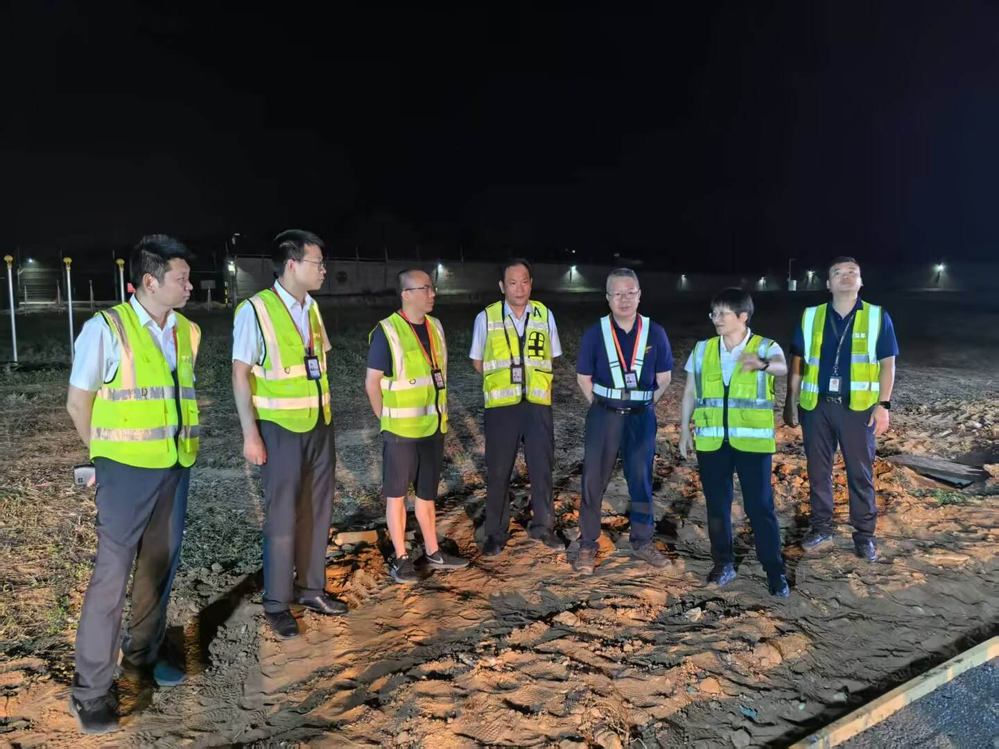4月30日凌晨停航时段,民航三亚监管局局长冯红升带队赴三亚凤凰机场航向天线基座直立面消除工程现场开展检查指导,空管处处长涂晶晶随同参与督导。三亚空管站站长刘永谋、党委书记黄颖全程陪同,协同凤凰机场相关负责人共同推进项目进度,顺利完成防草坪浇筑收尾工作。期间监管局领导重点核查了施工安全规范及质量管控措施落实情况,并就夜间作业风险防范提出具体要求。