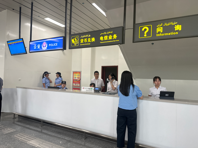 外币兑换服务:国际厅内设立专项兑换窗口,支持美元、欧元、哈萨克斯坦坚戈等主流货币兑换,并提供实时汇率查询,满足旅客跨境支付需求。此外,在候机楼人流量较多的重点区域,对布放的ATM机进行了更新、升级,确保旅客取现服务正常开展,保障外籍旅客入境兑换无空白,零距离服务出入境人员的兑换需求。