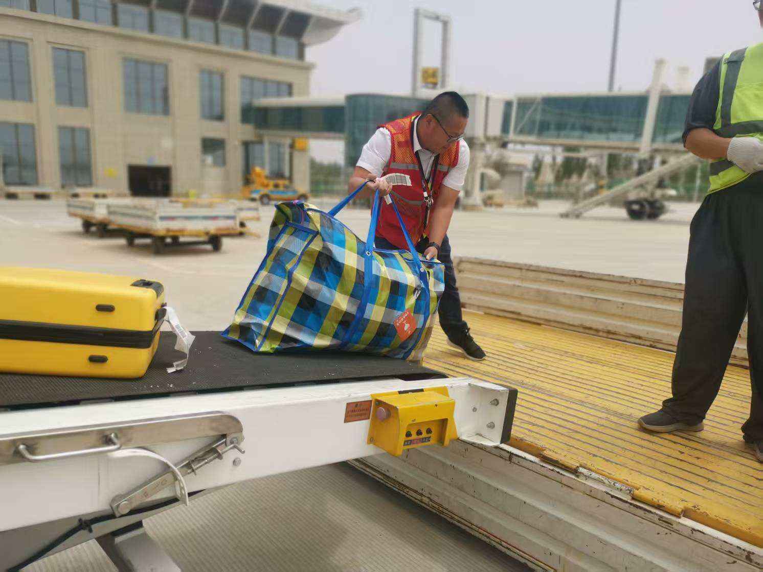 货舱保障显身手:在行李分拣区和货舱区域,时常能看到党员志愿者们忙碌的身影。当遇到行李量激增或特殊大件行李时,他们二话不说,撸起袖子就加入搬运队伍。沉重的行李箱、易碎的托运行李……他们小心搬运、合理码放,确保每一件行李都能安全、准时地随旅客抵达目的地。汗水浸湿了红马甲,却浇不灭他们服务保障的热情。