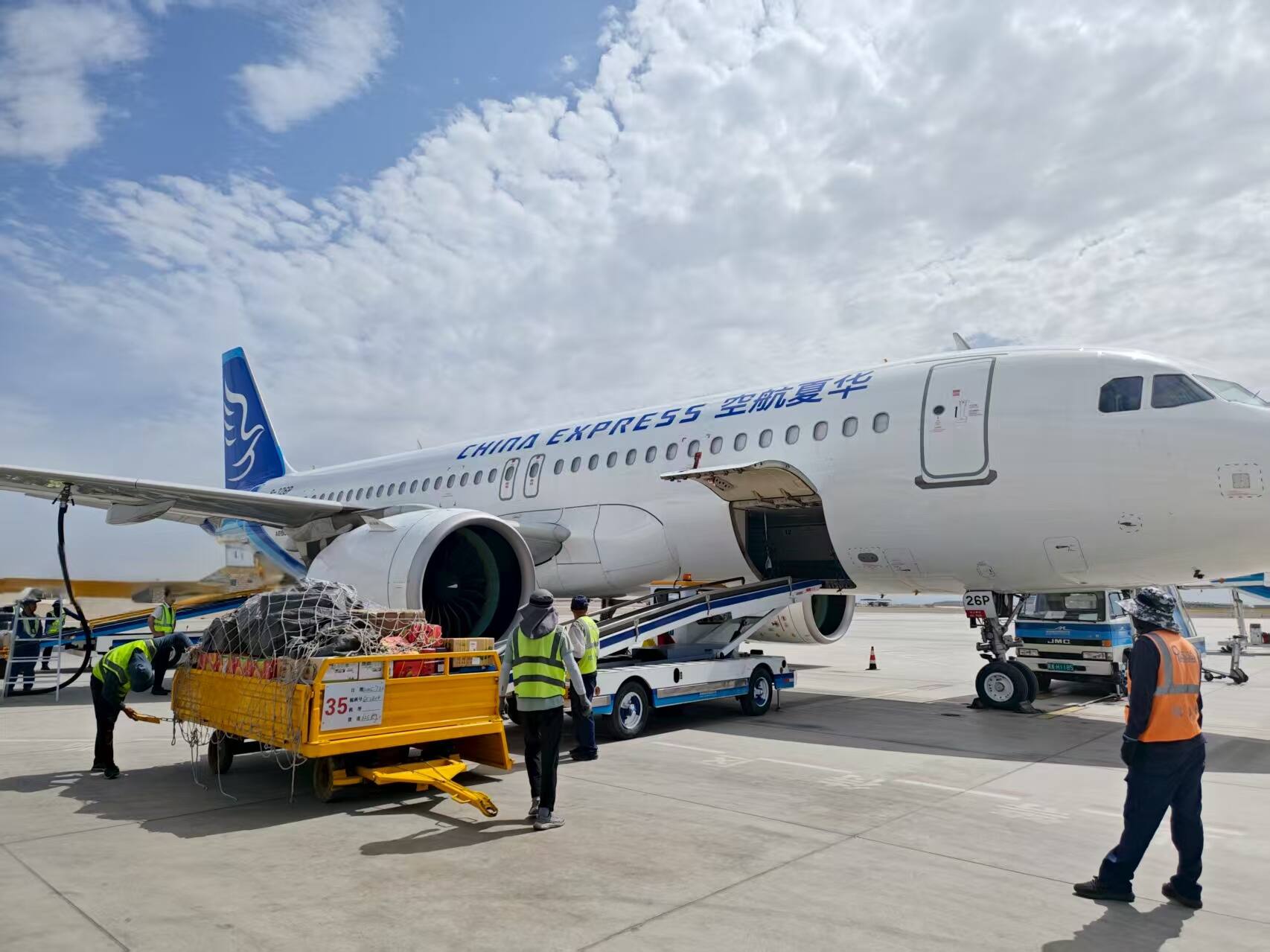 机场飞行区,热浪包裹着全身,地面蒸腾的热气让空气都微微扭曲。烈日直射下的机坪宛如巨大的“铁板烧”,然而,这里却是机务、地服、装卸等岗位员工的主战场。