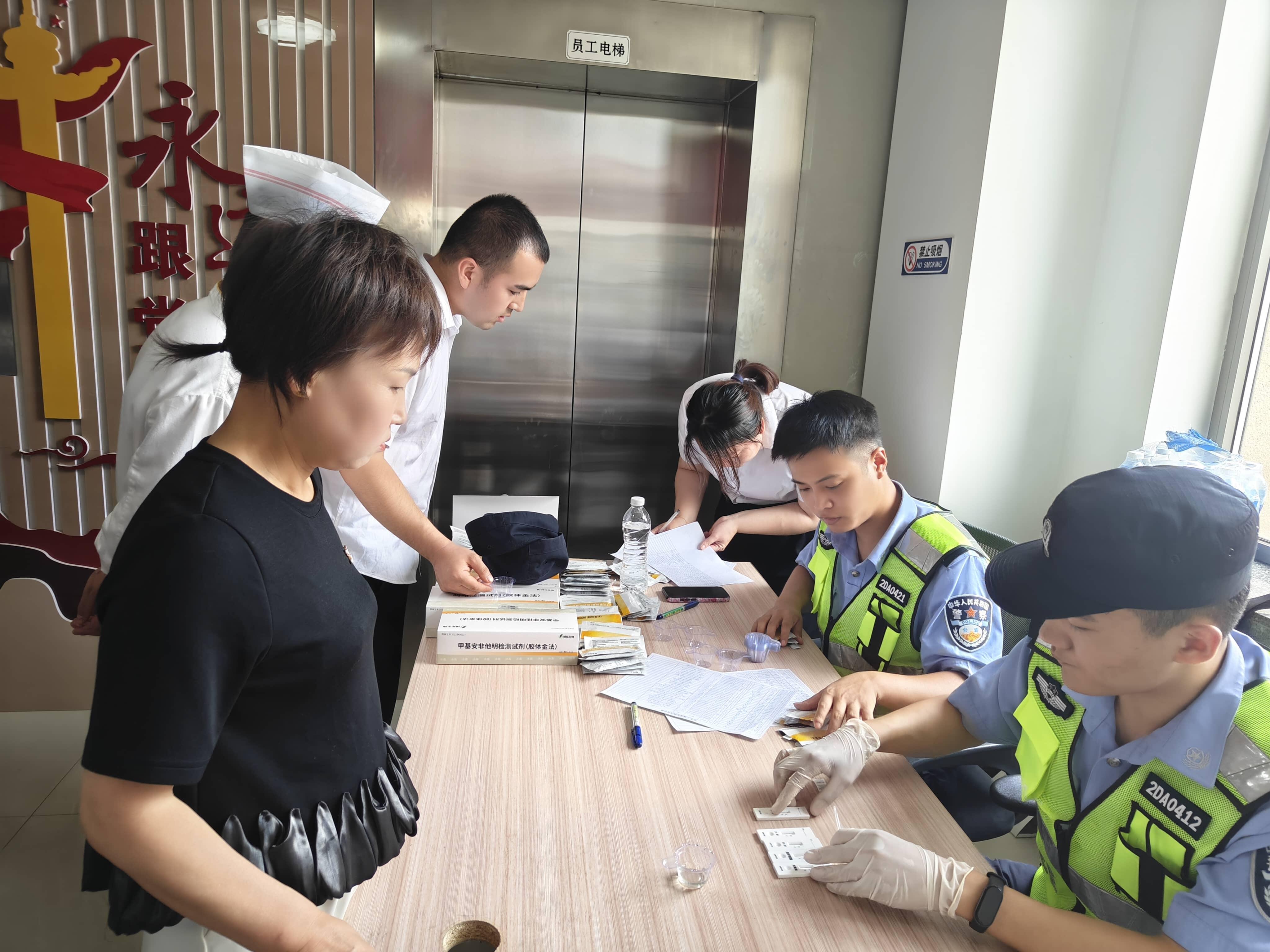 此次检测以新疆机场集团天缘航旅有限责任公司库尔勒(库车)分公司天缘国际酒店全体员工为基准,挑重点、分批次开展涉毒检测。检测开始前,民警宣传员先为检测员工开展了一次禁毒宣传,通过展示毒品模型、发放宣传资料等方式,分别讲解了目前常见的毒品类型、吸食毒品的使用工具,以及在酒店客房如出现疑似吸毒工具时的处理方法,通过宣传使员工进一步认清毒品对个人、家庭和社会的危害,员工们的防毒拒毒反毒意识显著提升。同时民警也呼吁全体员工主动揭发检举涉毒线索,积极配合公安机关开展打击整治毒品违法犯罪,警民携手共同营造绿色、健康、无毒的辖区环境。