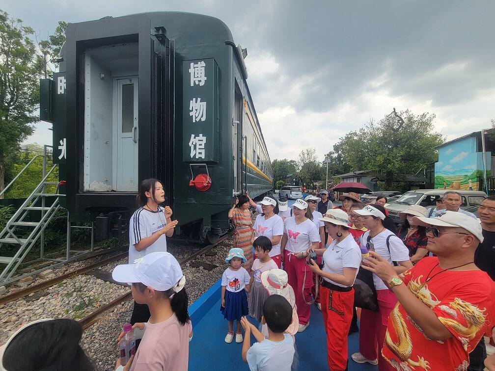 寻宝游戏结束后,大家走出火车抗战博物馆,来到户外欣赏“火车底下跑赛车”,参与抗日知识问答竞赛,将活动的氛围推向高潮。