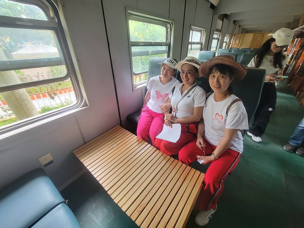 当天下午,官渡作协会员及参加活动的嘉宾们一行人来到呈贡区白龙潭公园旁的“火车时光沉浸世界”,领取火车票(寻宝地图),登上绿皮火车,开始了激动人心的寻宝游戏。
