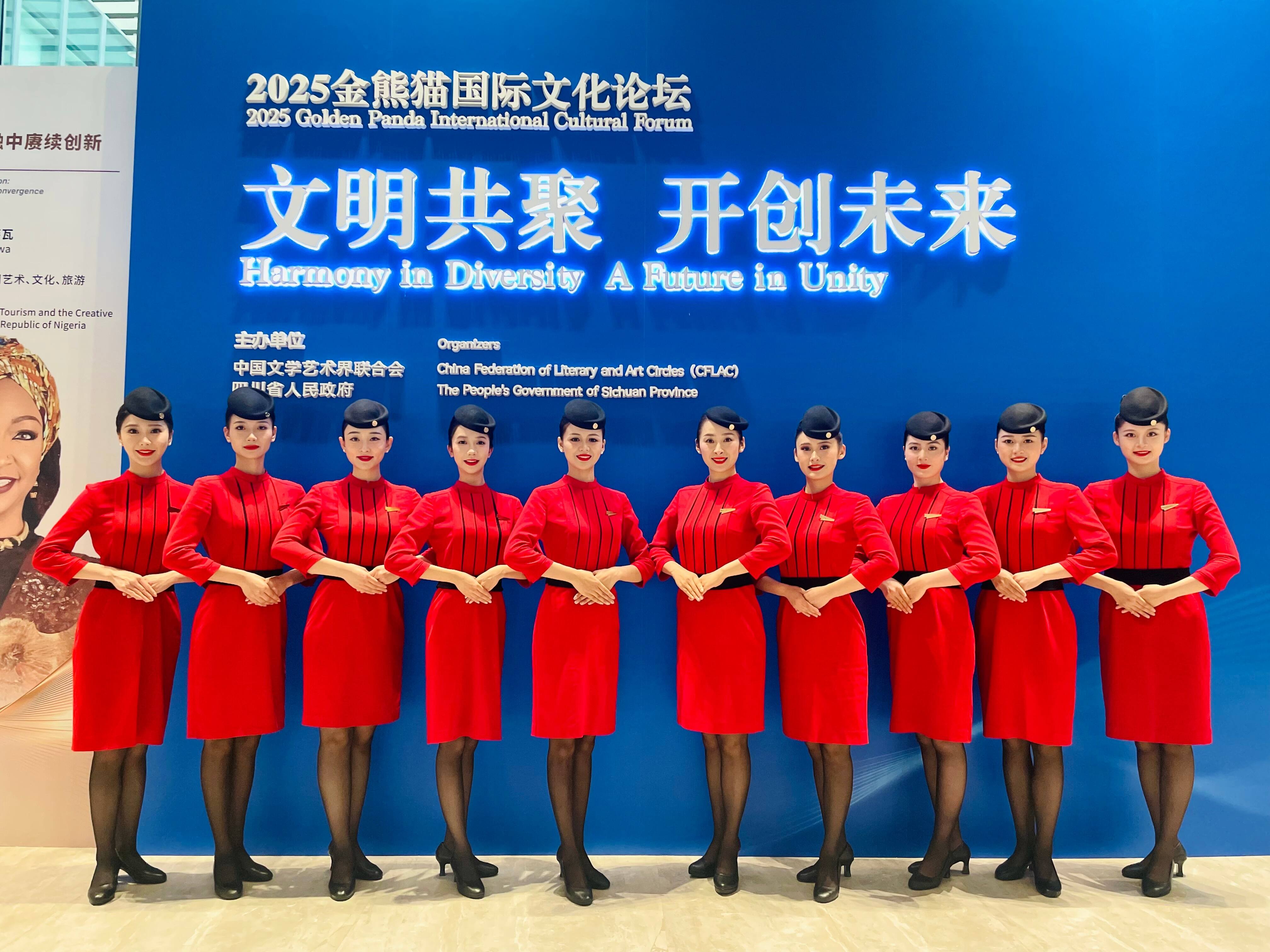 此外,作为“大熊猫文化全球推广大使”的川航乘务员还受邀为论坛及盛典提供专业、周到的礼仪服务,向现场嘉宾传递熊猫文化,讲述四川故事。