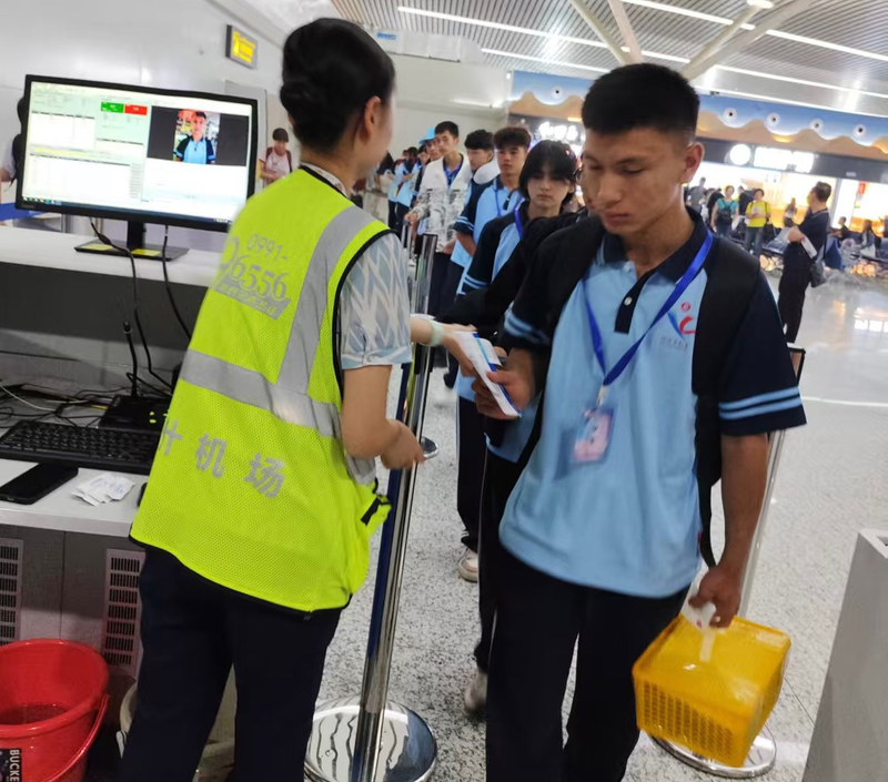 考虑到学生团队人数较多且此时正早高峰,在值机环节,喀什徕宁国际机场旅客服务部为学生们特别增开了值机柜台,并安排人员引导,以确保办理乘机手续的过程既快速又顺畅。在工作人员的默契配合下,仅用15分钟便为学生团队办理了乘机手续,并顺利托运了共计20余件行李至广州;在安检环节增开安检通道,优先为学生团队进行安全检查,并耐心讲解安检流程与注意事项,避免学生们因紧张而遗漏物品;登机环节,工作人员提前到达登机口,播放登机广播并引导学生们有序排队,让他们优先登机。