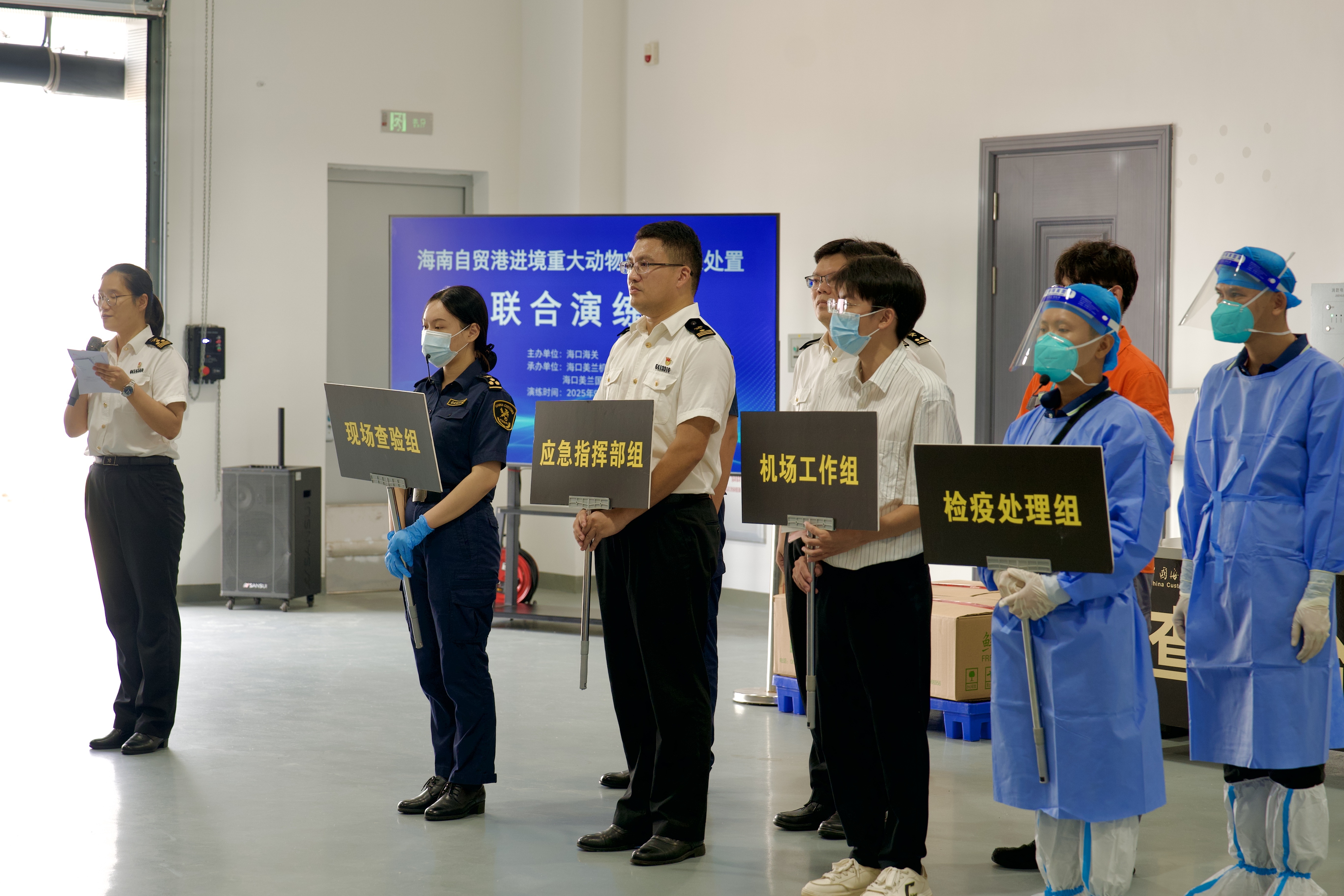 9月30日,由海口海关主办,海口美兰机场海关与海南控股旗下海口美兰国际机场(以下简称美兰机场)联合承办的海南自贸港进境重大动物疫情处置联合演练在美兰机场举行。省农业农村厅、省商务厅、海口市政府、海口江东新区管理局及各隶属海关代表40余人现场观摩。