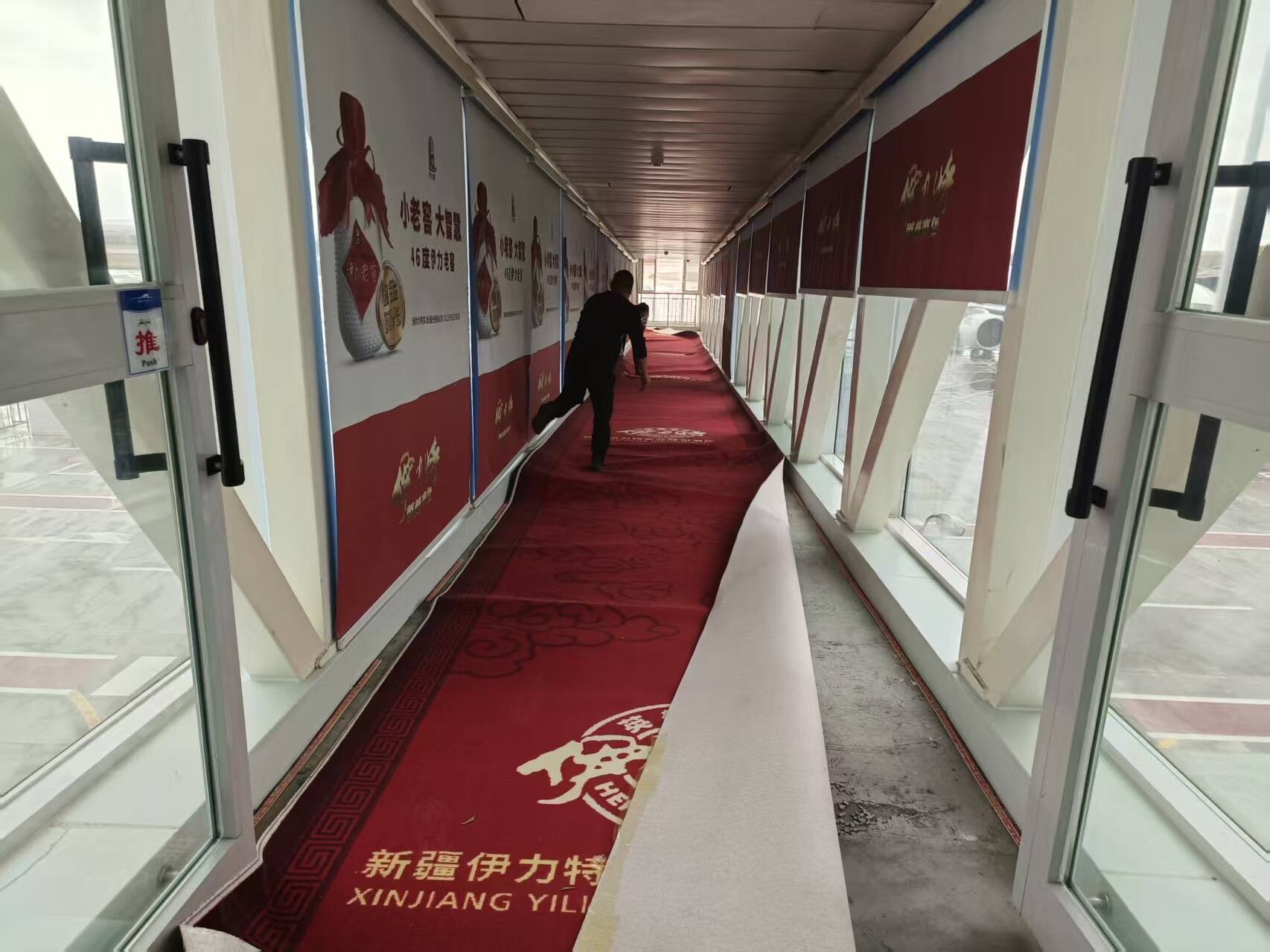 地处北疆的阿勒泰地区冬季漫长,雨雪冰冻天气频发,对机场地面设施提出了更高要求。经过长期高负荷使用,机场原有地毯已出现不同程度磨损,防滑性能有所下降,存在一定的安全隐患。为彻底消除这一风险,机场管理方未雨绸缪,科学规划,投入专项资金对候机楼公共区域及4座廊桥的地毯进行全面更换。