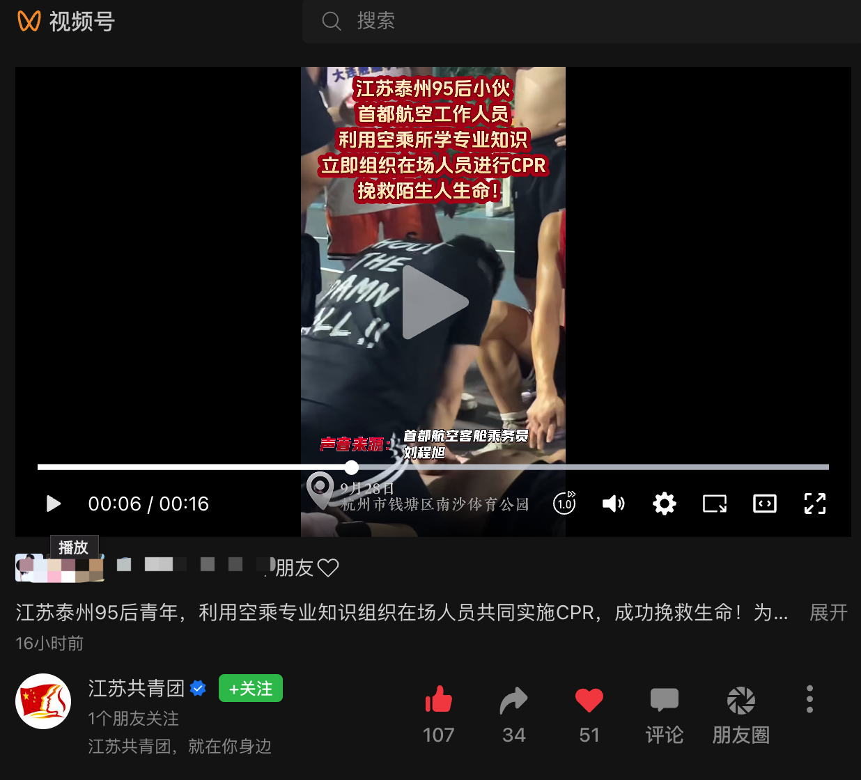 9月28日晚间19时许,杭州市钱塘区新湾街道南沙体育公园篮球场内突发紧急情况:市民杨先生在打球时突然失去意识倒地抽搐,几秒后脸色发紫且抽搐停止,情况十分危急。