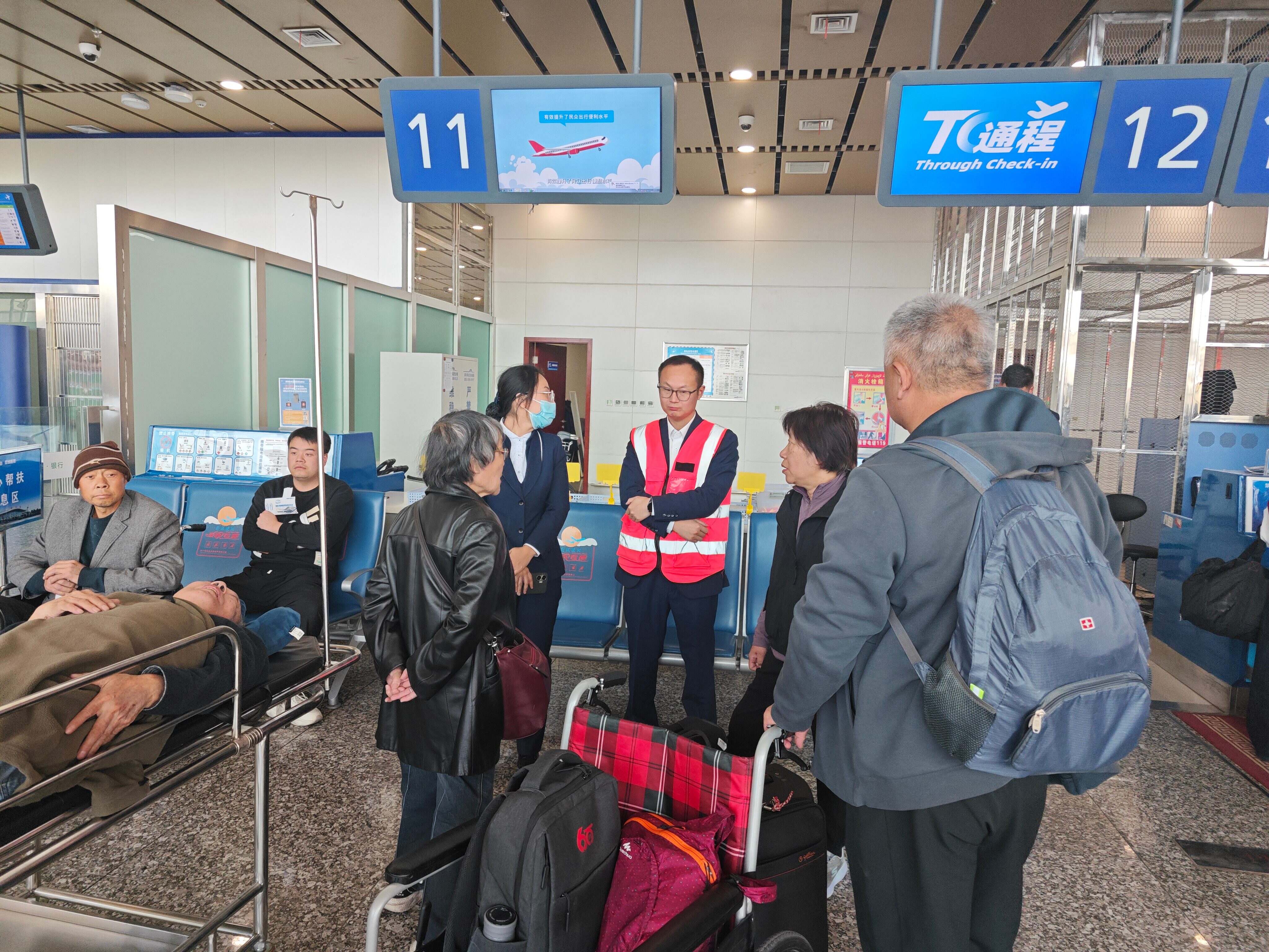 在库尔勒梨城机场工作人员察觉到旅客情况后,及时与航空公司、机场医疗评估旅客身体情况,在航司确保承运后,积极做好乘机服务保障。考虑到旅客登机需求,众人小心搀扶旅客,缓慢将其从担架上转移至轮椅,全程动作轻柔,时刻询问旅客感受,确保转移过程安全稳妥。值机柜台前,值机员快步上前,俯身轻声与旅客沟通出行需求,在快速核对信息、办理值机与行李托运手续的同时,同步协调开通无障碍绿色通道,最大限度缩短旅客在公共区域的停留时间。值机手续办理完毕后,早已等候在旁的两名登机口服务员随即接过保障接力棒。