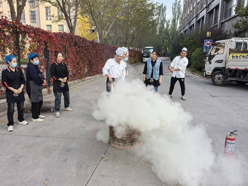 为强化消防安全工作,提升餐饮公司工作人员对火灾突发状况的处置能力。近日,蓝天公司组织餐饮工作人员开展了一场“重实操、强实战”的消防应急演练,进一步筑牢消防安全防线。
