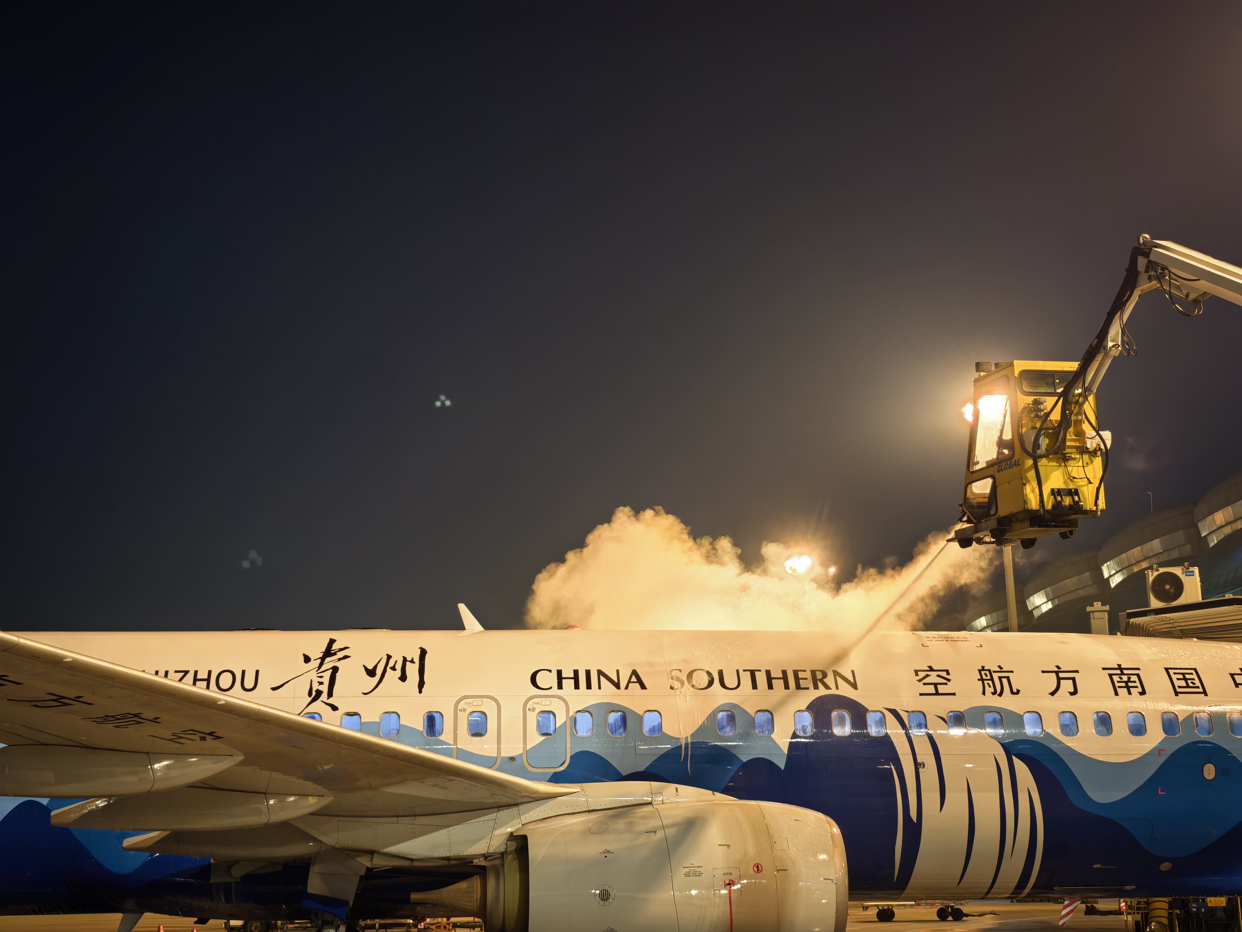 11月26日,面对持续的天气影响和航班运行需求,南航贵州公司再次高效集结保障力量,快速、精准地完成了9架次飞机的除防冰任务。据统计,两日内,公司累计投入专业保障人员数十人次,高效完成16架次的除防冰保障作业,消耗除防冰液约8900升,以“速战速决”的姿态打赢了这场寒潮攻坚战。