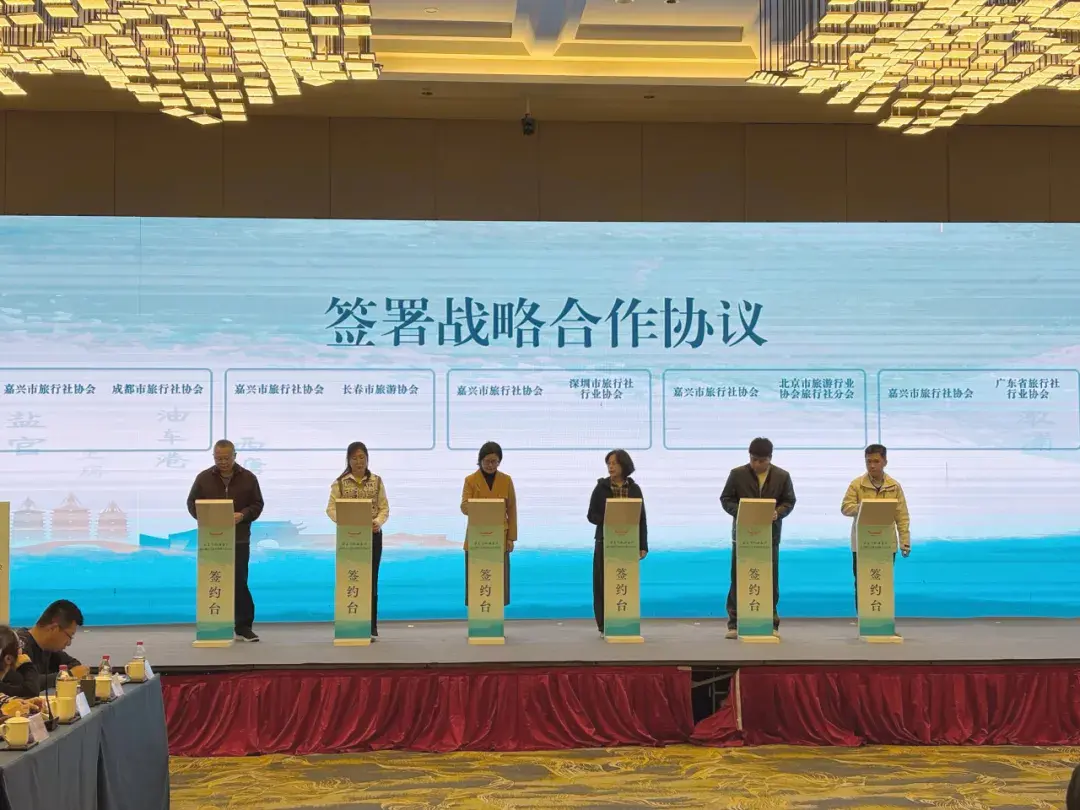 会上,嘉兴市文化广电旅游局重磅发布“凭登机牌享优惠”专项政策。市旅行社协会同步推出《乘着飞机游嘉兴》主题路书。签约仪式上,嘉兴市旅行社协会与5个首航城市旅行社协会签约,首航城市旅行商与嘉兴市旅游饭店民宿行业协会签约,标志着嘉兴与重点客源市场的合作迈入实质性阶段。座谈环节中,各方围绕线路开发、游客互送、服务保障等达成共识,最后举行的活动启动仪式,正式拉开“乘着飞机游嘉兴”系列活动的序幕。