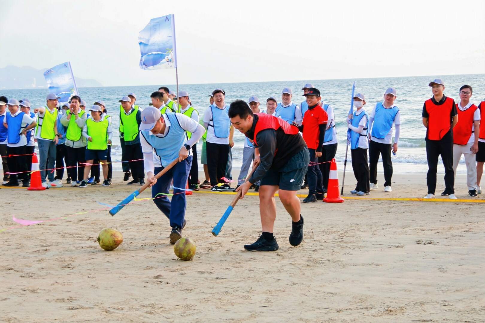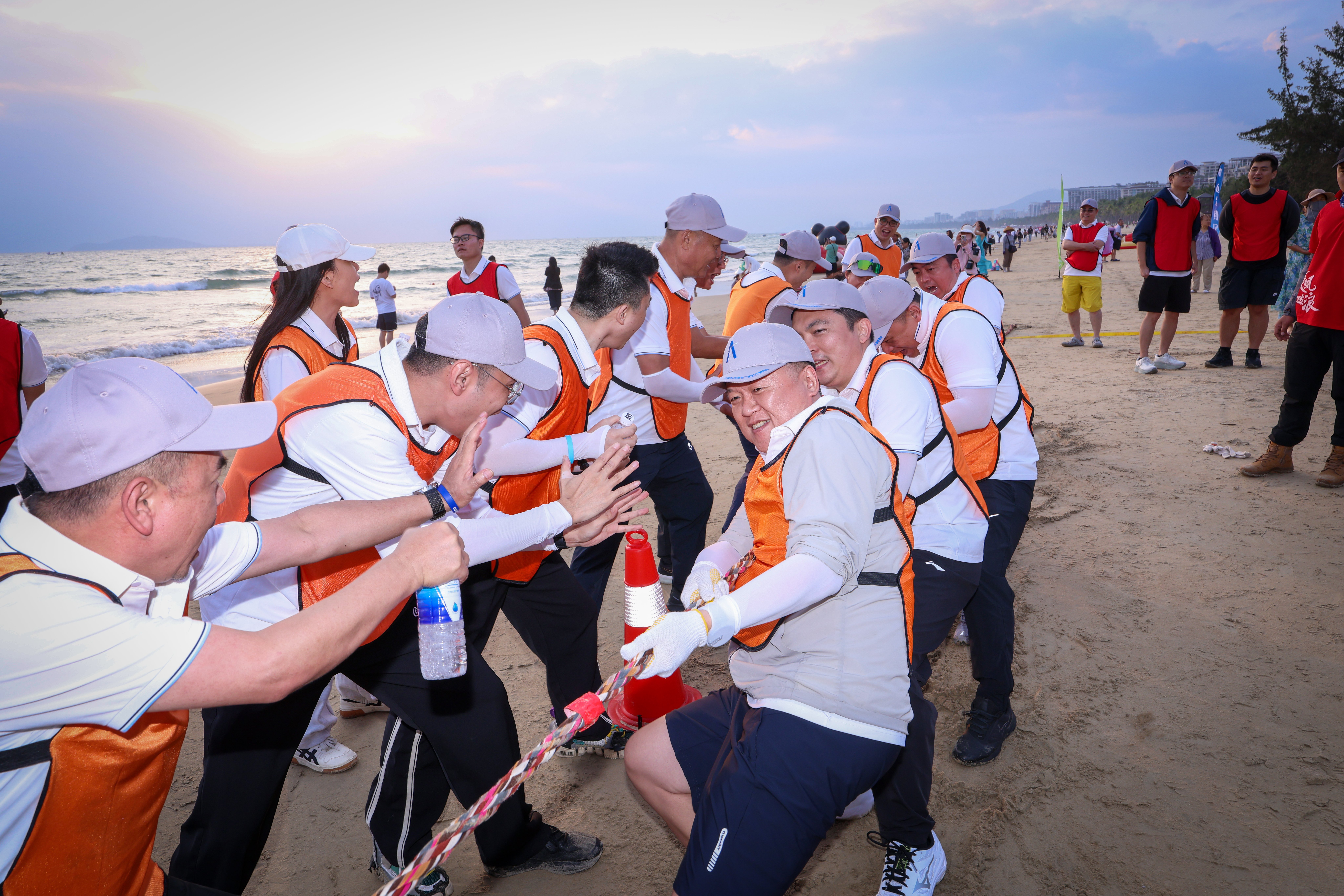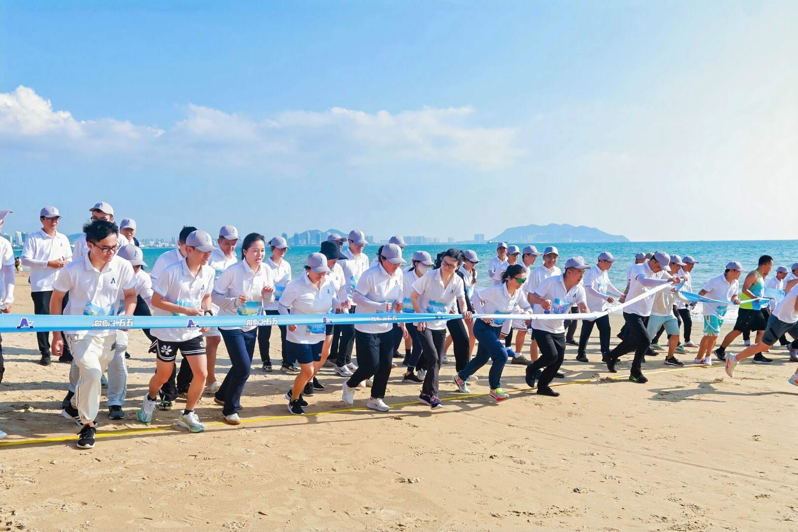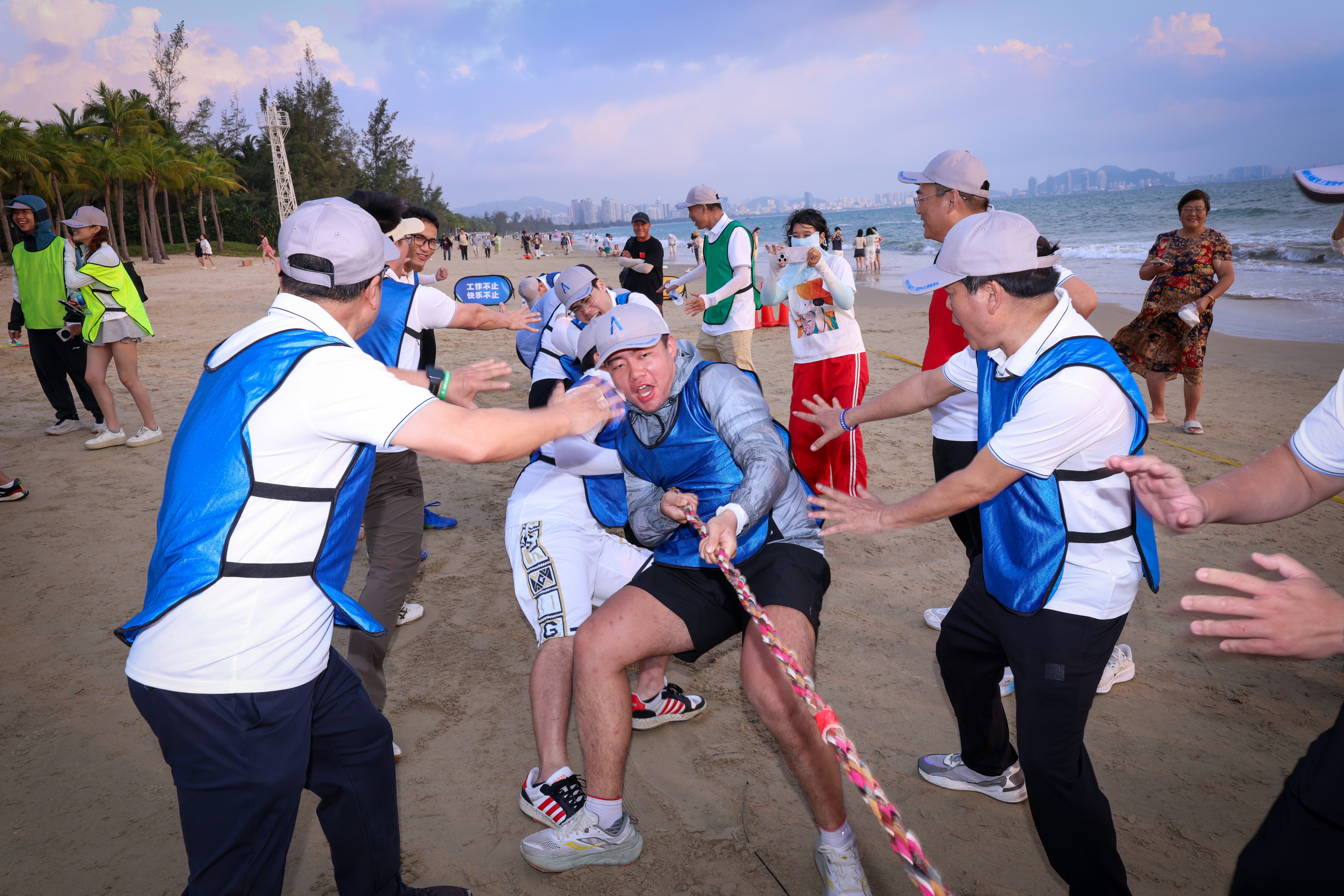 沙滩长跑作为首个竞技项目,率先点燃全场热情。2.5公里的赛道沿沙滩蜿蜒铺开,细软的沙粒虽为奔跑增添了阻力,却丝毫挡不住职工们的步伐。随着发令枪响,参赛职工们精神抖擞地冲出起点,有的步伐稳健、匀速前行,有的奋力冲刺、抢占先机,沙滩上留下一串串深浅不一的脚印。赛道旁,未参赛的职工组成临时啦啦队,挥舞着彩旗呐喊助威,“加油!坚持住!”的欢呼声与海浪声交织在一起,成为最动听的助力旋律。不少职工在奔跑中相互鼓励,即便体力不支,也在同伴的加油声中咬牙坚持,最终全员顺利完赛,用坚持诠释了运动精神,冲过终点线时的击掌欢呼,定格下一个个热血又温暖的瞬间。