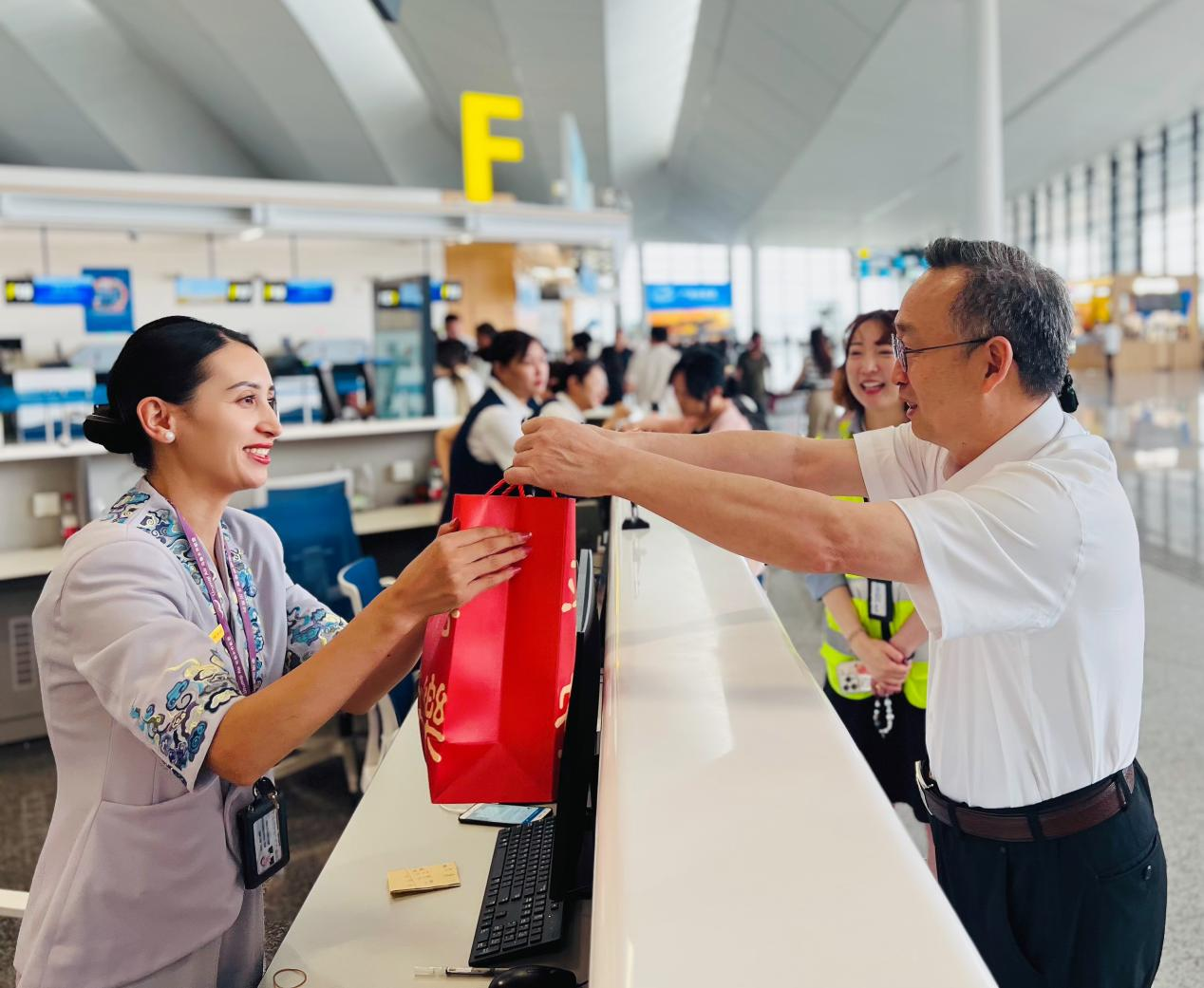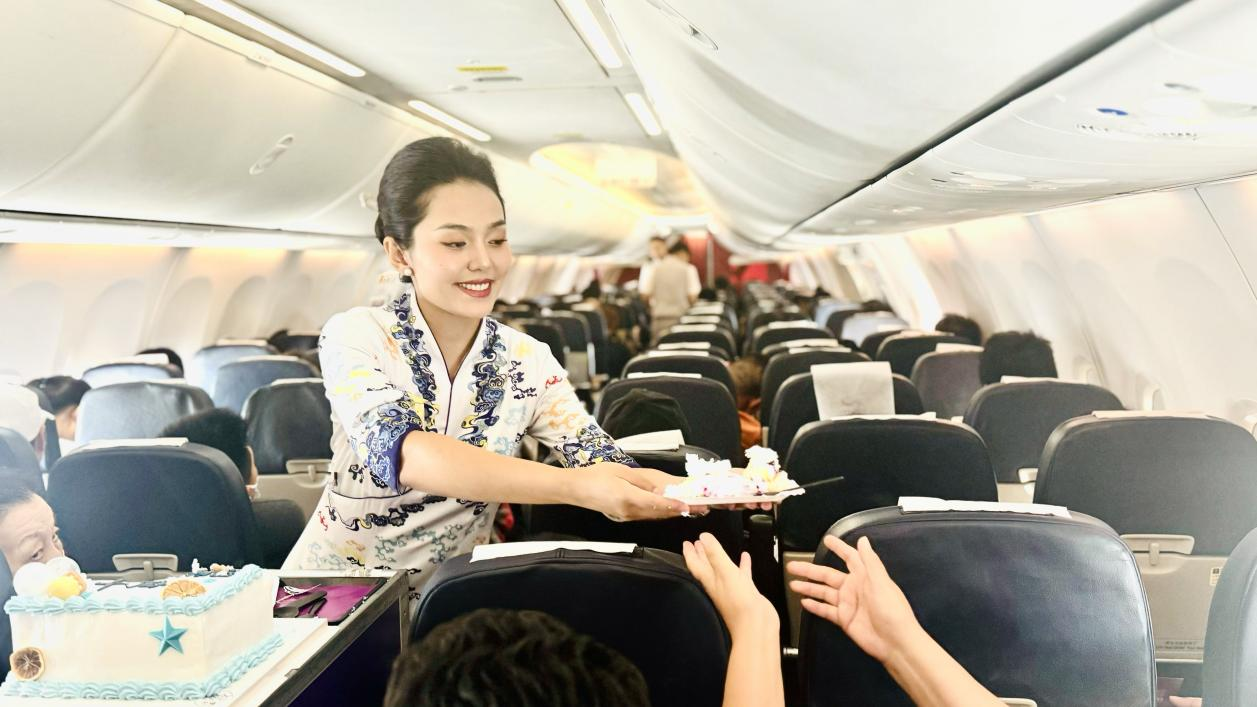 首航的背后,是乌鲁木齐航空长期以来将“真情服务”与地域文化深度融合的坚实积淀。作为植根于多民族地区的航空公司,乌鲁木齐航空致力于打造具有新疆特色的服务品牌。通过覆盖值机、客舱、呼叫中心等多环节的多语言服务,将维吾尔语、哈萨克语、蒙古语等纳入日常保障,让服务从沟通开始便贴近各族旅客。在万米高空,客舱不仅是旅途空间,更成为展示新疆文化的“空中展厅”——乘务员演绎民族歌舞、举办特色主题航班,让航班化身为传递团结与热情的“空中名片”。