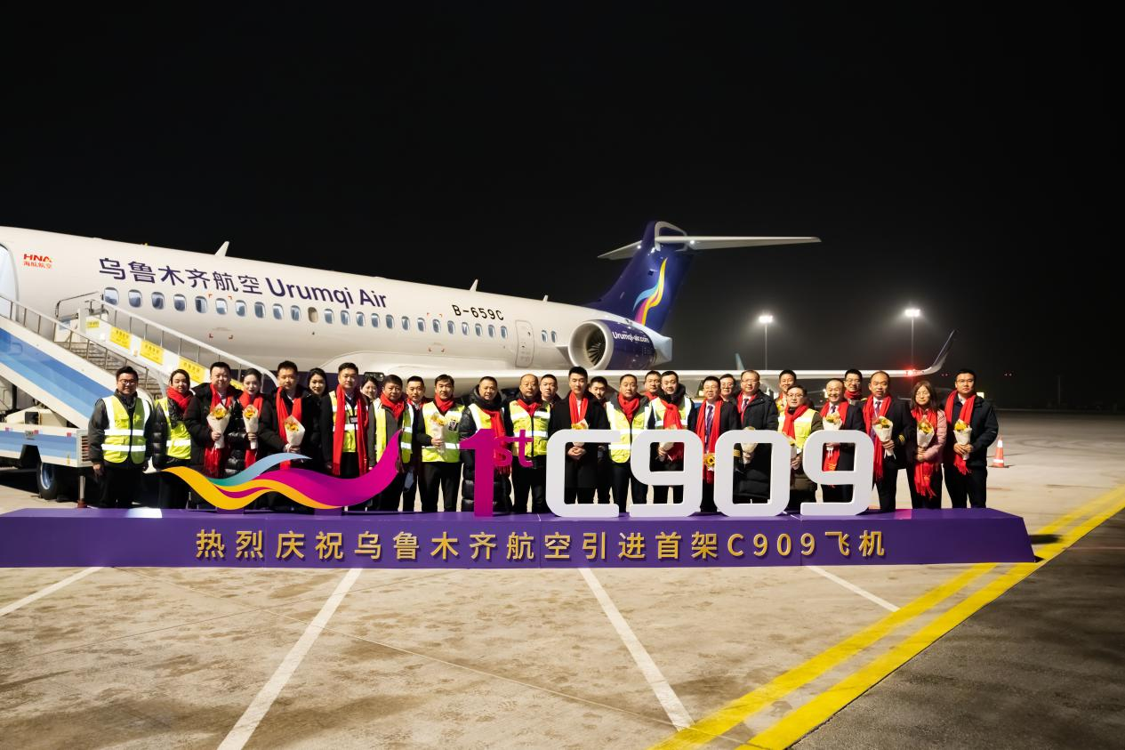 首航的背后,是一次服务国家战略、重塑疆内航网的主动突围。C909的引进,绝非简单的“接飞机”,而是一场从技术储备、人员培训到运行保障的全链条攻坚,是新海航乌鲁木齐航空响应国家号召、支持国家发展战略的具体体现,也是公司机队结构优化、迈向多元化运营的关键一步。该机型以其良好的经济性、适应性和环保性,尤其适合新疆地区的航线网络特点,将显著增强公司在支线市场的通达性与竞争力,为深耕“疆内成网、东西成扇”的航线网络布局注入强大动能,为服务“一带一路”核心区建设架设更为高效的空中桥梁。