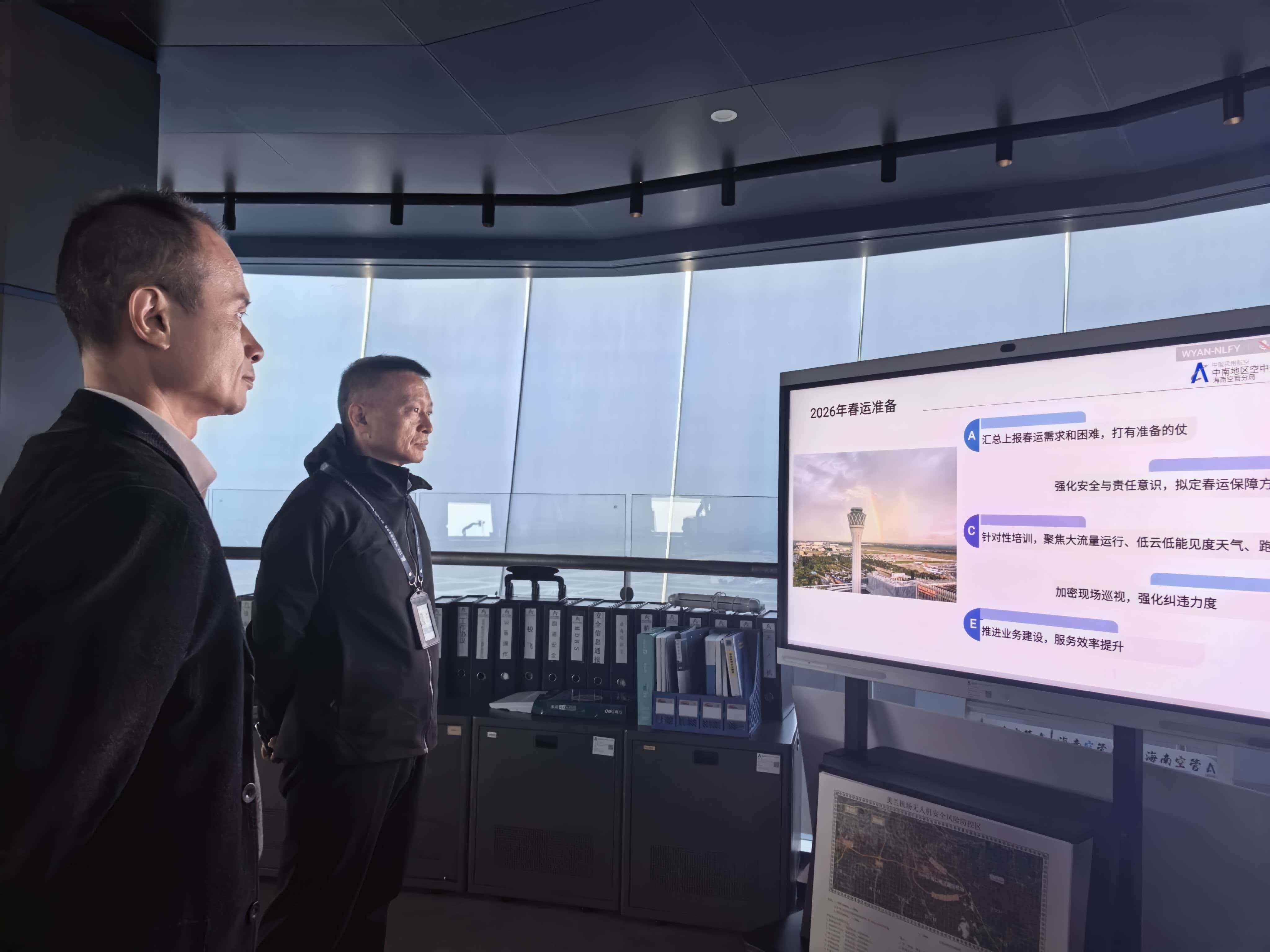 邢诒吉副局长强调,一是始终将航班安全运行放在首位,严格落实安全保障工作,重点关注春运期间航班快速增长、天气变化显著等特点;二是强化运行协调,统筹全局,要求海南空管分局同海南机场集团、各航司等近20家海南民航单位通力协作,共同提升春运期间海南民航整体保障能力;三要充分发挥安全风险分级管控和隐患排查治理双重预防机制的作用,主动、全面排查各类安全风险,切实提升运行保障效率,全力保障春运期间民航运行安全平稳。