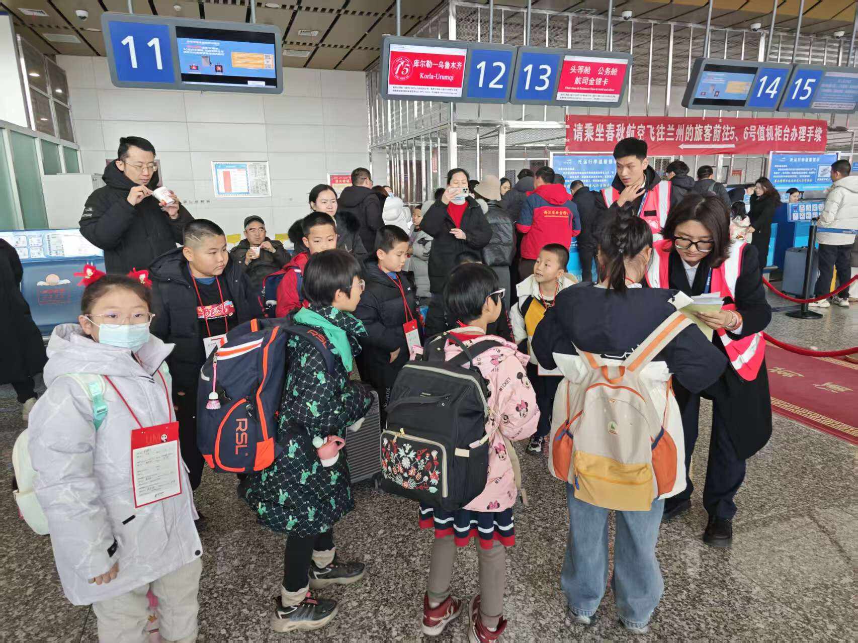 1月24日,在库尔勒梨城机场出港的CA1766航班上,共有15名无成人陪伴儿童,创近期航班无陪儿童数量新高,成为库尔勒梨城机场寒假专项保障的生动写照。面对激增的服务需求,库尔勒梨城机场值机、安检、登机口等多岗位高效配合,为无陪儿童全流程贴心护航。