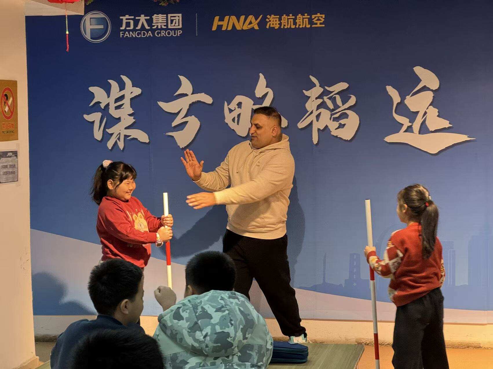图 天津航空外请外教老师与孩子们互动游戏