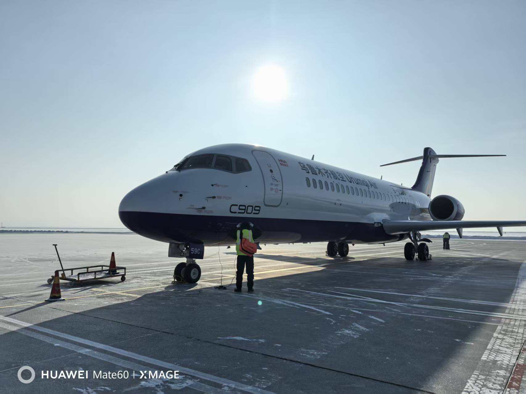 作为乌鲁木齐航空"波音+中国商飞"双机队协同运营模式的核心机型之一,C909客机在此次试飞中展现了优异的性能表现。该机型采用先进复合材料机身与超临界机翼设计,集成高度智能化航电系统,兼具良好的经济性、适应性与环保性,尤其适配新疆地区的支线飞行需求。此次试飞成功,不仅验证了C909机型在疆内复杂地理环境下的运营适配性,更完善了以乌鲁木齐为枢纽、串联富蕴与塔城的区域航空网络。