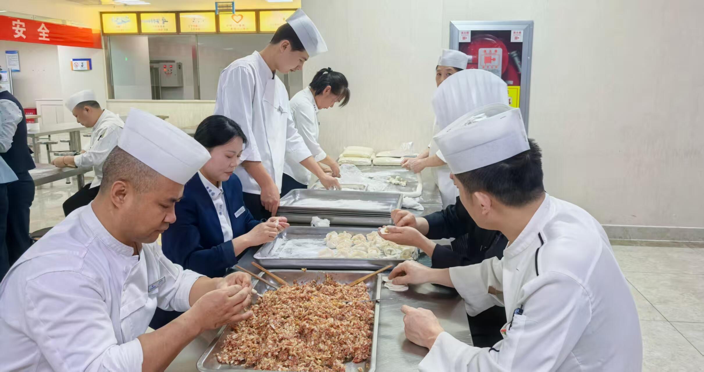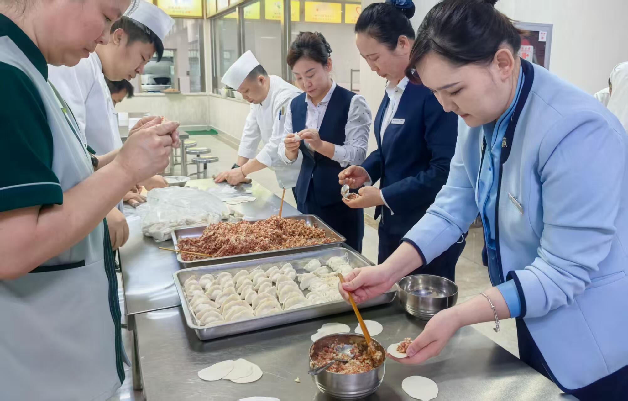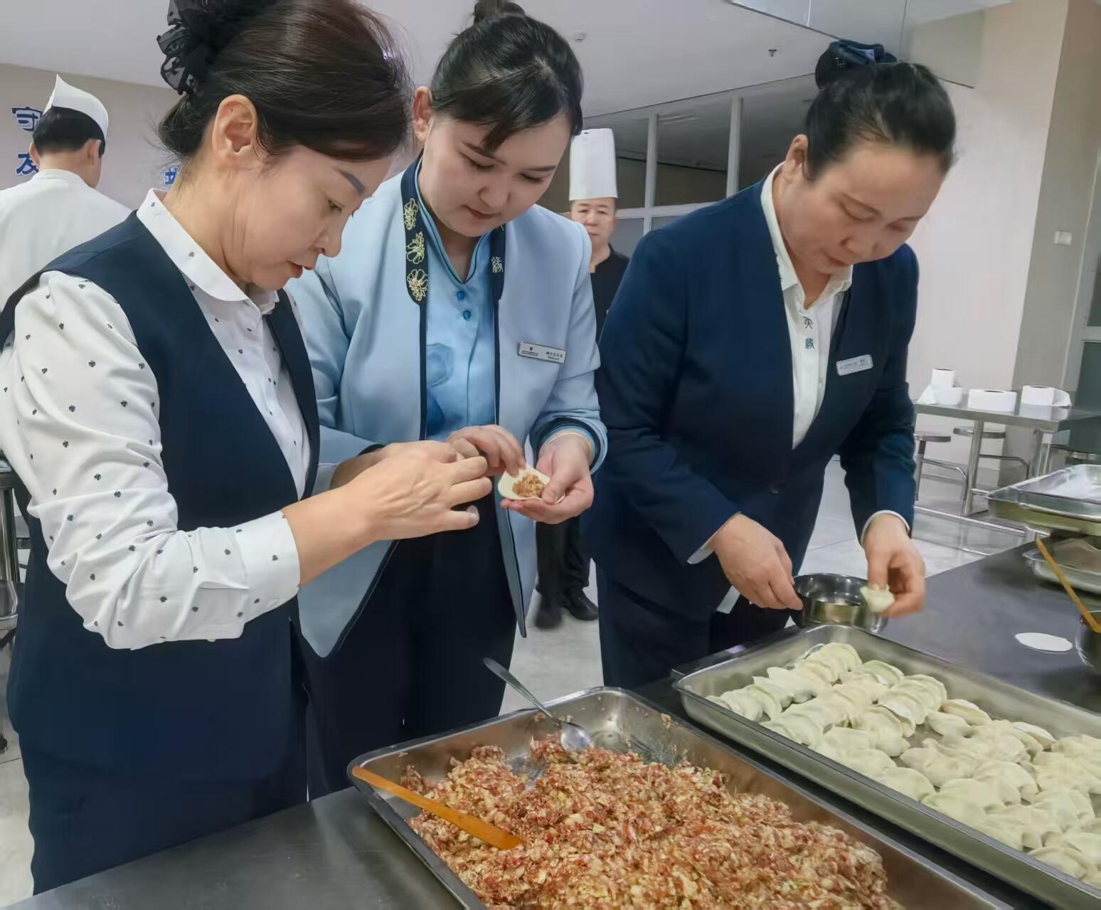 理论学习后,全体人员在员工餐厅开展包饺子活动。大家分工协作、默契配合,有序完成揉面、擀皮、包馅、塑形等工序,现场欢声笑语、氛围融洽。员工们围在一起拉家常、谈工作、话新年,形态各异的饺子承载着团圆寓意,更凝聚起各族职工手足相亲、守望相助的深厚情谊。