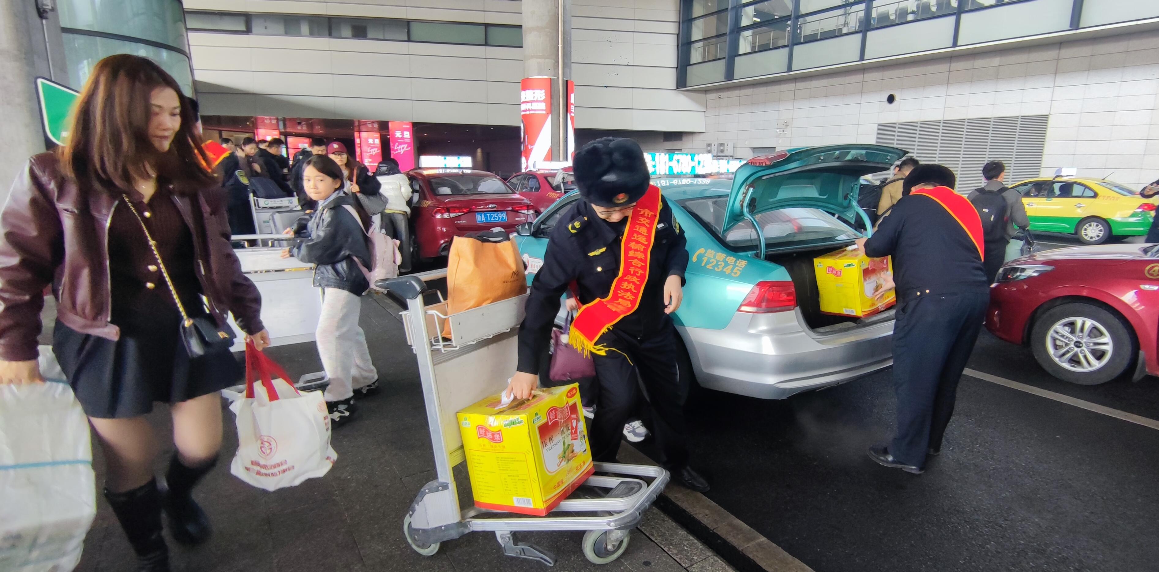 普法宣传筑防线,安全出行记心间。为进一步规范机场区域交通运输市场秩序,守护旅客出行安全,天缘航旅公司联合交通执法部门同步开展安全出行普法宣传活动。志愿者们向过往旅客、营运车辆驾驶员发放宣传资料,详细讲解非法营运“黑车”的安全隐患、维权风险及相关法律法规,以案释法阐明乘坐“黑车”的危害,引导旅客自觉抵制非法营运车辆,主动选择机场巴士、正规巡游出租车等合规营运交通工具出行。同时,工作人员现场解答旅客关于出行维权、合规乘车的相关疑问,进一步筑牢旅客安全出行思想防线,切实维护旅客合法权益,营造安全、有序、规范的枢纽场站运营环境。
