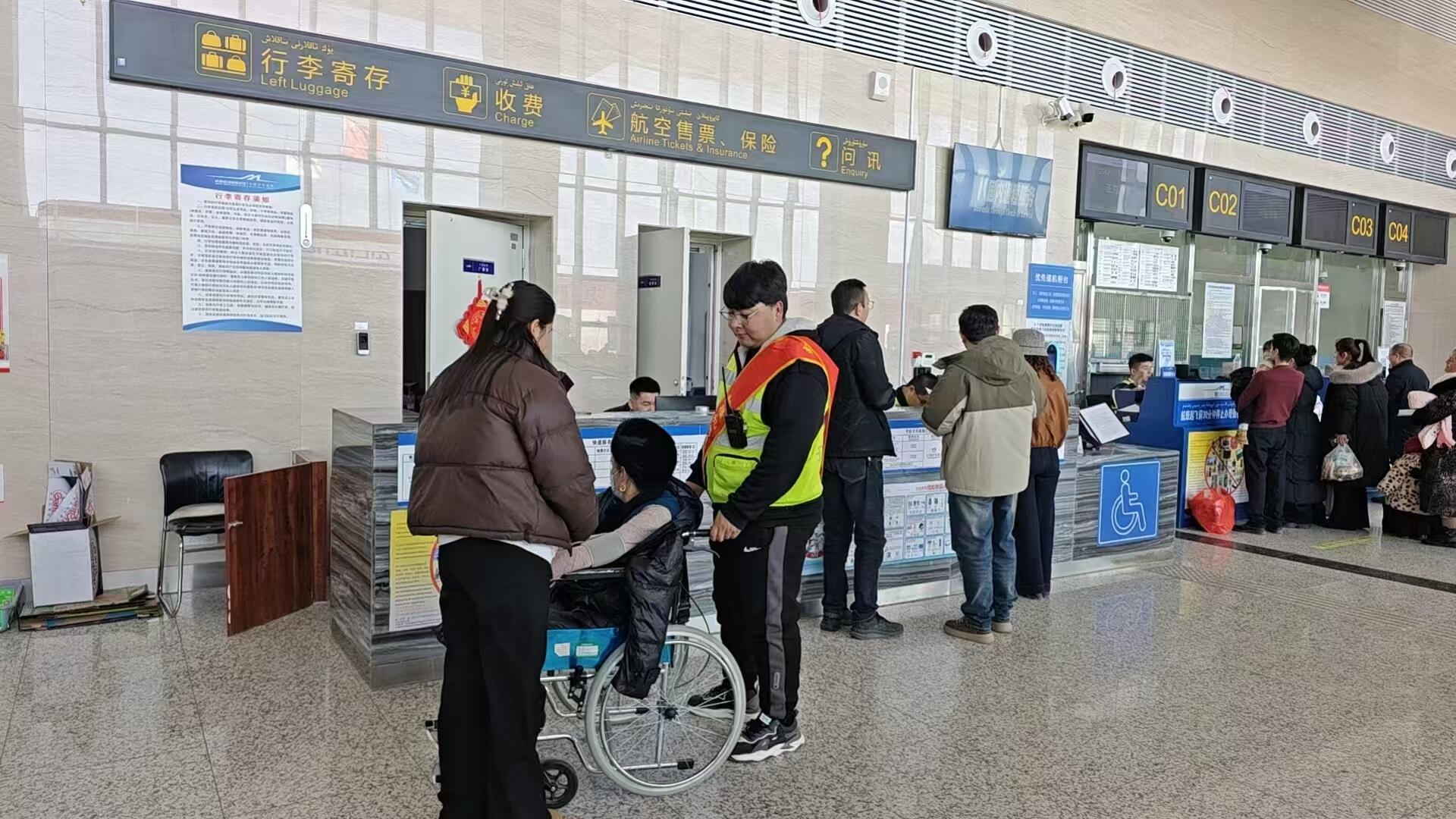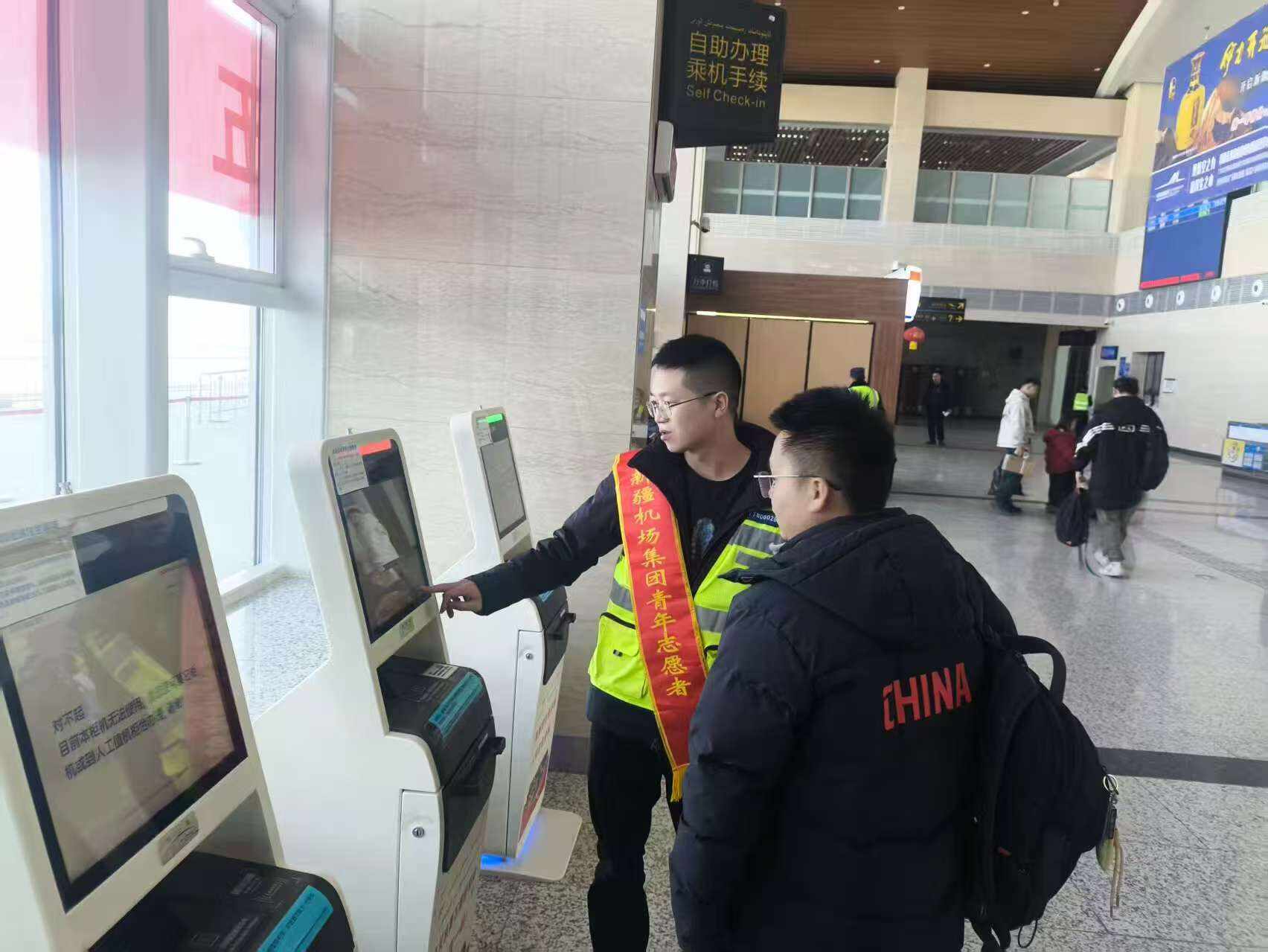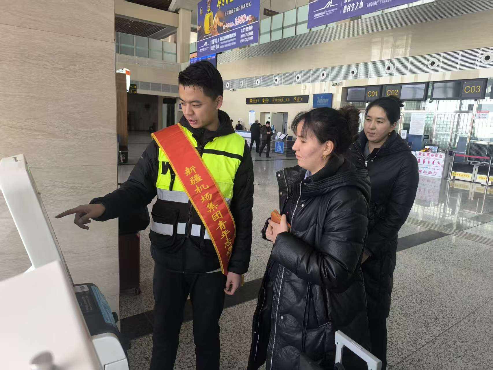 在候机楼出发大厅,身披“新疆机场集团青年志愿者”绶带的志愿者们忙碌的身影成为春运期间一道温暖的风景线。他们主动识别并帮扶老、弱、病、残、孕等行动不便的旅客,协助搬运大件行李、引导优先登机;同时,在自助值机设备旁为旅客提供操作指引,帮助快速完成选座、打印登机牌等流程,用细致周到的服务缓解了旅客的出行焦虑。
