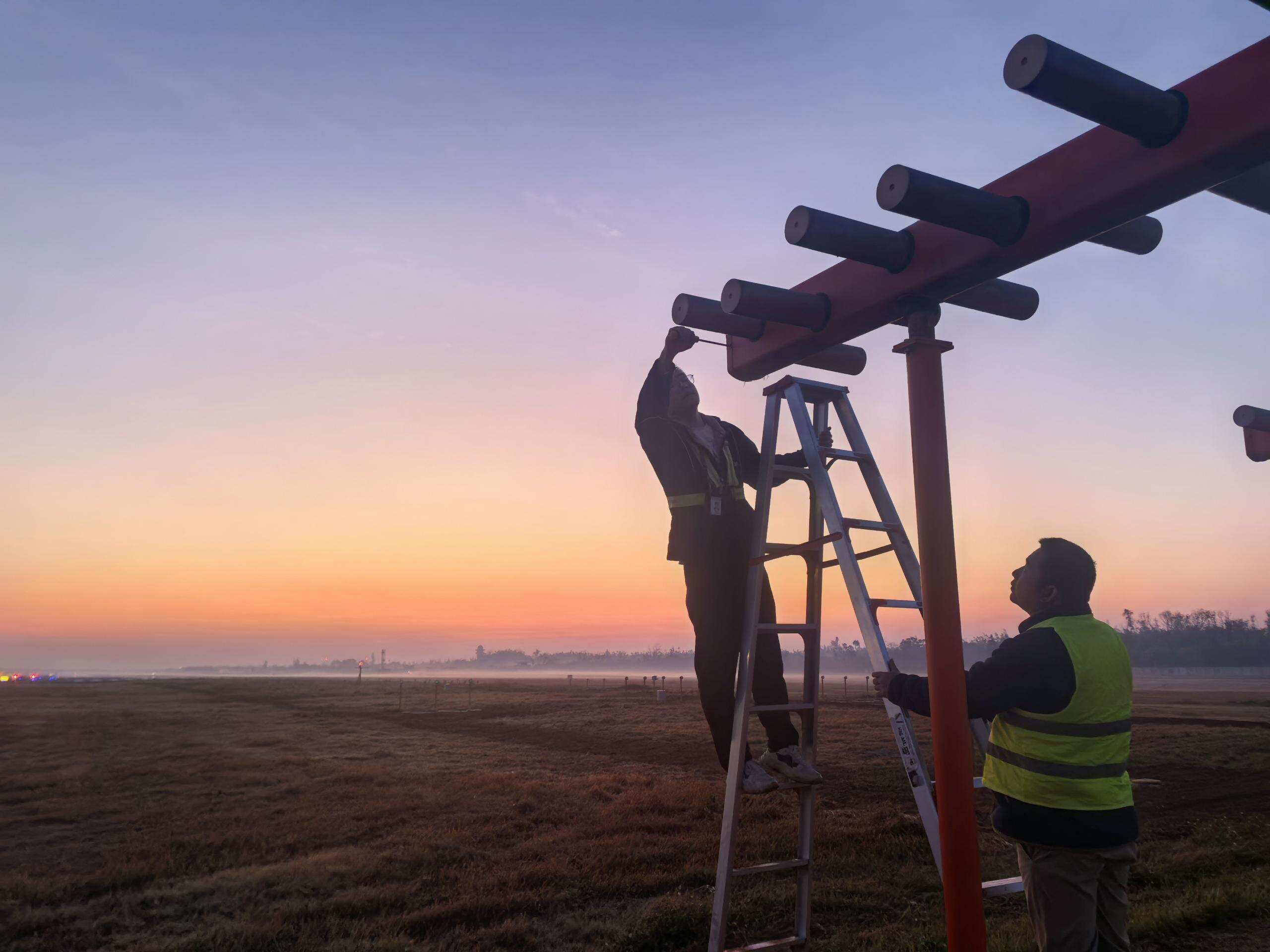 设备是空管运行的“生命线”。技术保障部坚持“安全第一、预防为主”,在春运前便开展了全面、细致的准备工作。部门对“五类关键设备”和“五个运行环境”进行了深入排查与预防性维护,特别是针对海口地区气候特点,完成了对本场4套仪表着陆系统室外单元的专项维护。同时,完成了对旧州19信道甚高频室外天线等关键设施的更换与防水处理,确保了通信信号的清晰畅通。通过对全向信标台、微波、高频、卫星等设备室外单元的全面检查,以及对供电系统、运营商链路的协同检验与应急储备,构筑了全方位、无死角的安全运行屏障。
