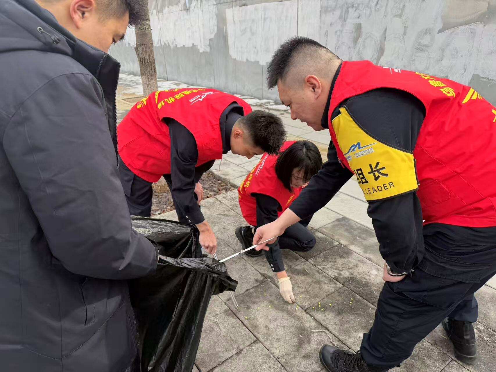 聚焦社会民生需求,积极开展社区服务、绿色生态文明实践活动。团员青年志愿者走进五一农场楼兰社区,与社区工作人员亲切交流;主动开展环境整治,捡拾小区垃圾、清理卫生死角,以实际行动守护绿色家园;为一线环卫工人送上热水,传递春日温暖与人文关怀。志愿者们用真心服务群众、用行动诠释担当,得到社区与居民高度认可。