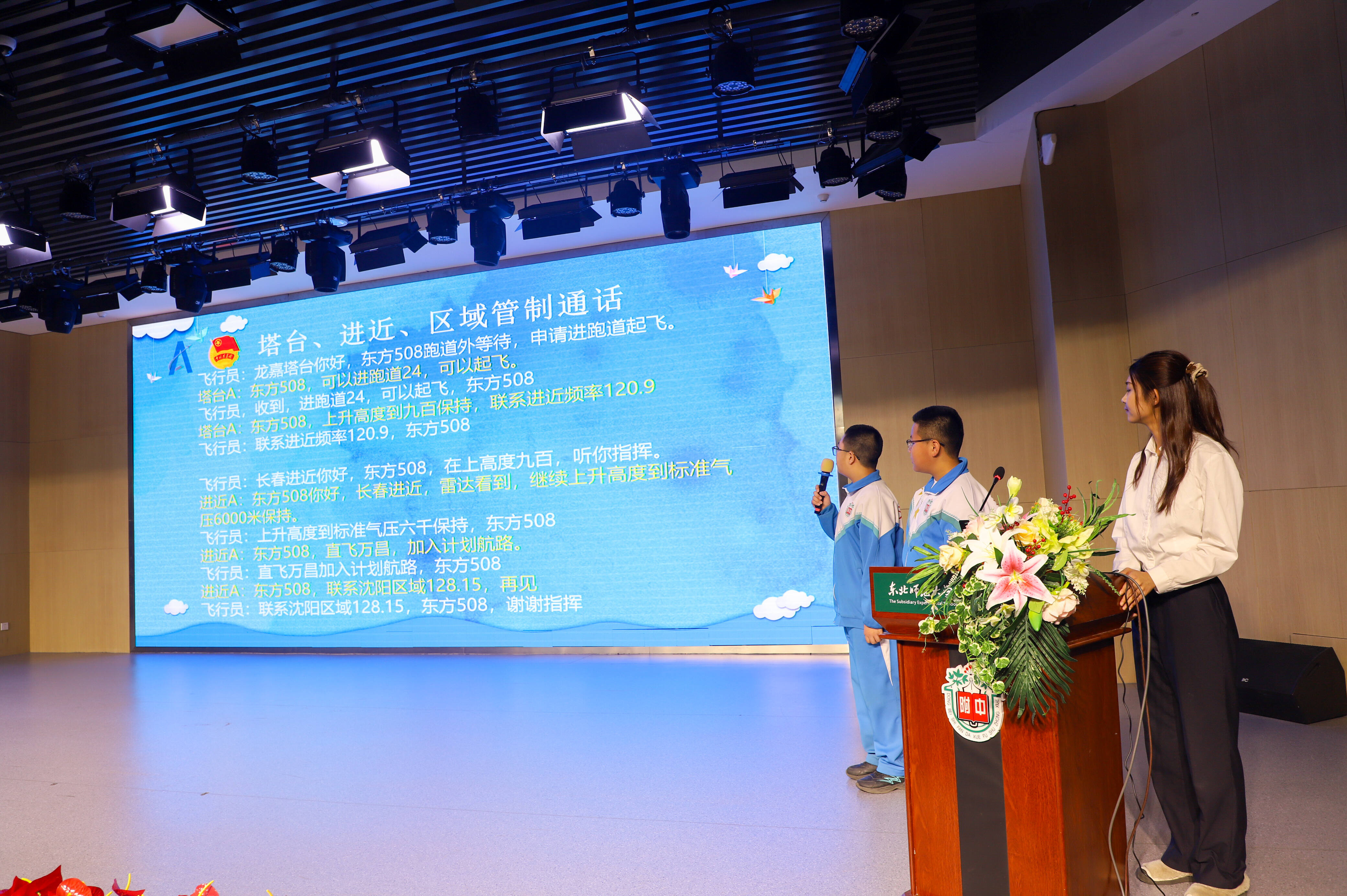 民航空管系统青年讲师团成员、吉林空管分局青年讲师姜希缘以大家熟知的电影《中国机长》精彩片段为切入点,瞬间抓住了同学们的注意力,自然引入空管工作元素,让大家直观感受到空管在民航运行中的关键作用。